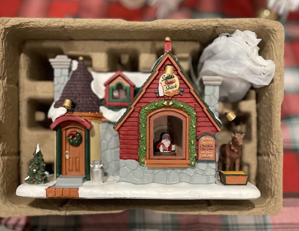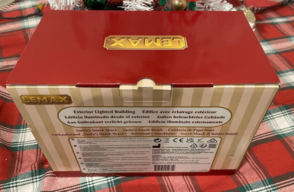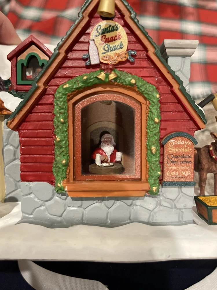 Brand New In Box. Originally $89.99. This is a part of the Lemax Santa's Wonderland Village collection, specifically Santa's Snack Shack. Perfect for collectors or those looking to create a whimsical winter display, this Christmas village item embodies the spirit of the holidays with its seasonal theme and detailed construction.