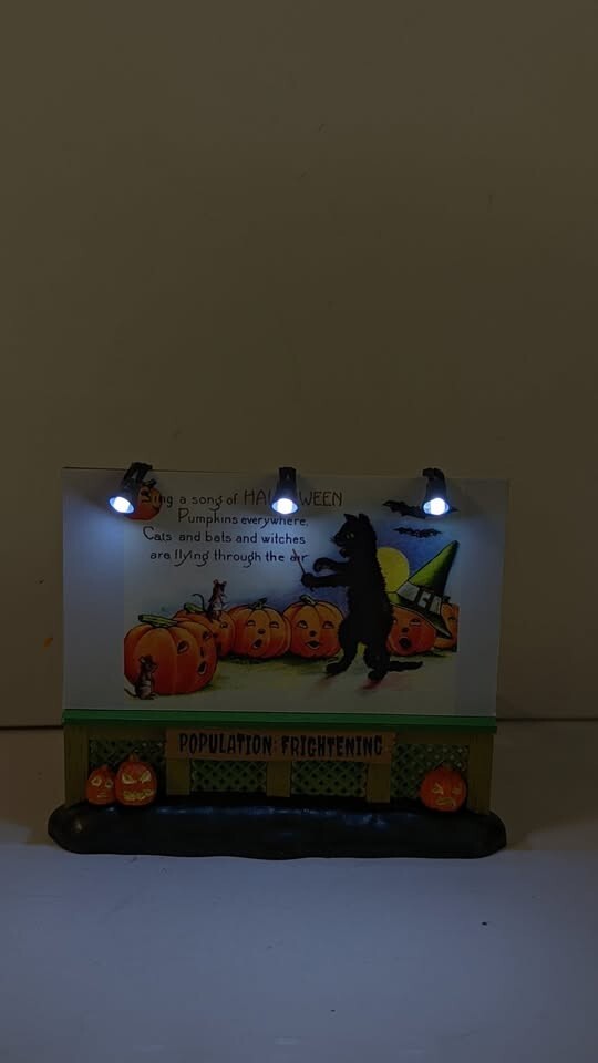 Please ask any questions before making the purchase. New. Custom Lemax Spooky Town Lighted Billboard Vintage Black Cat Sing a song of Halloween . Approx. size (H x W x D) 4 4 .29 x 4.72 x 1.02 inches 1 10.9 x 12 x 2.6 cm S/H FOR THIS ITEM WILL BE $10.00 IN THE STATES AND WILL INCLUDE DELIVERY CONFIRMATION. ALL SHIPPING IN THE STATES WILL BE DONE USPS, FIRST CLASS OR PRIORITY!