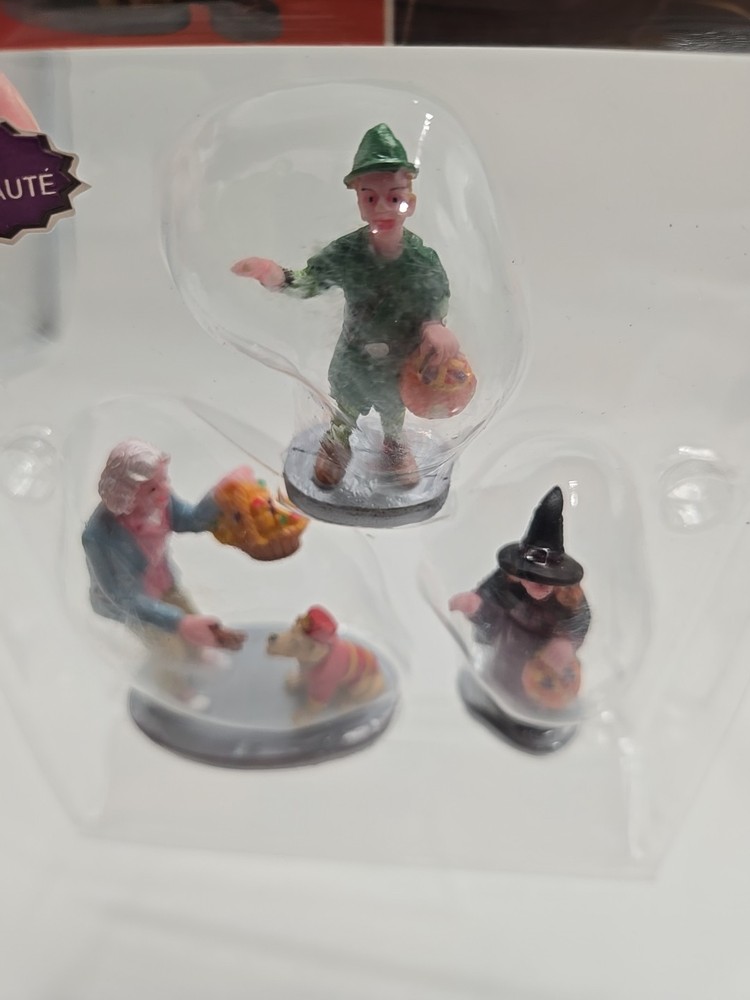 Add a spooky touch to your Halloween village with this set of three Lemax® Spooky Town® figurines. Featuring the popular trick or treaters, this miniature collection is perfect for collectors and holiday enthusiasts alike. Each figurine is expertly crafted with a treated finish to create a unique and detailed look. The perfect addition to any Halloween collection, these figurines will surely bring a smile to your face. Don't miss out on the chance to add this highly sought-after set to your collection. Get your Lemax® Spooky Town® Everyone Gets a Treat 3pcs. Figurines today and start creating your own Halloween village! New in package. See photos for details as they are part of my description. Message me with any questions you may have. Thank you, and please take a look at my other items. V-7