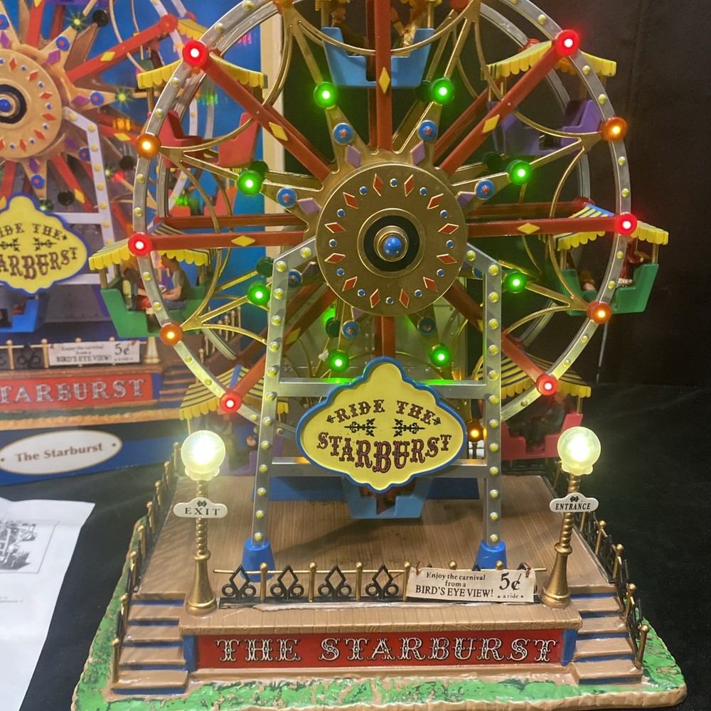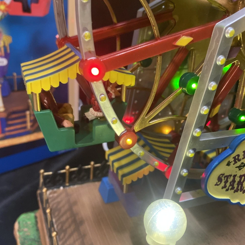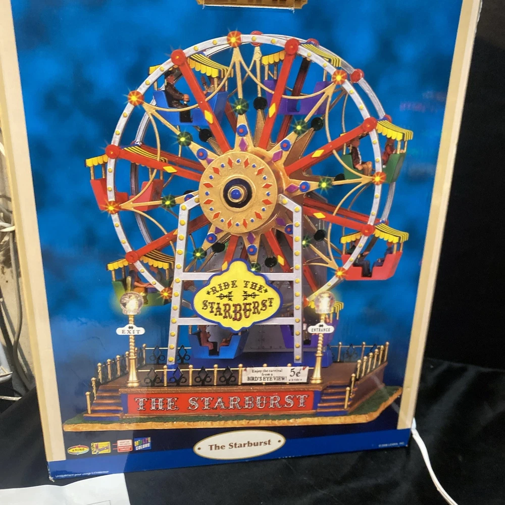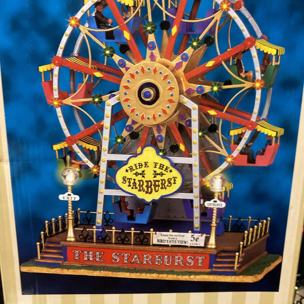 The Lemax Village The Starburst 64489 Ferris Wheel is a beautifully crafted collectible designed for holiday enthusiasts. This intricately detailed Ferris wheel is part of the Lemax Village collection and is themed around Carnivals . Made in China, this Ferris wheel lights up and plays sound effects, adding an extra touch of magic to any holiday display. Perfect for collectors or those looking to add a festive touch to their home whatever the season, this Lemax Village Ferris Wheel is sure to delight both children and adults alike.