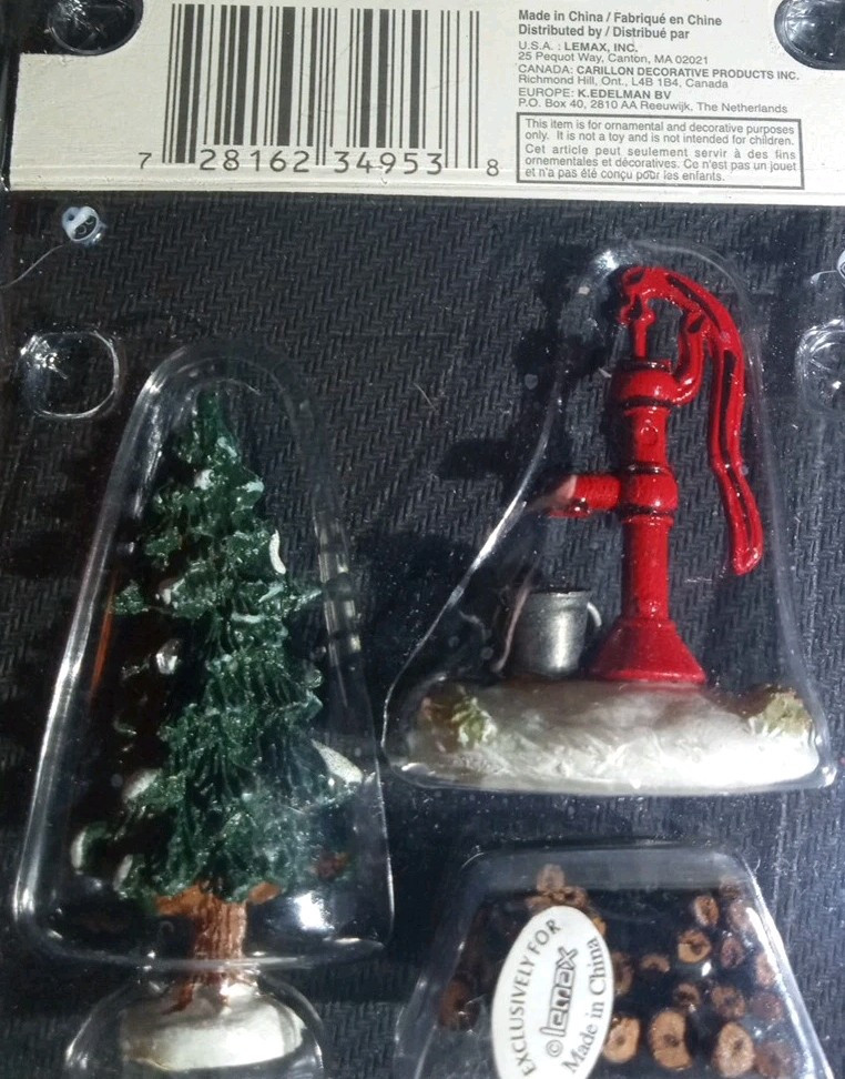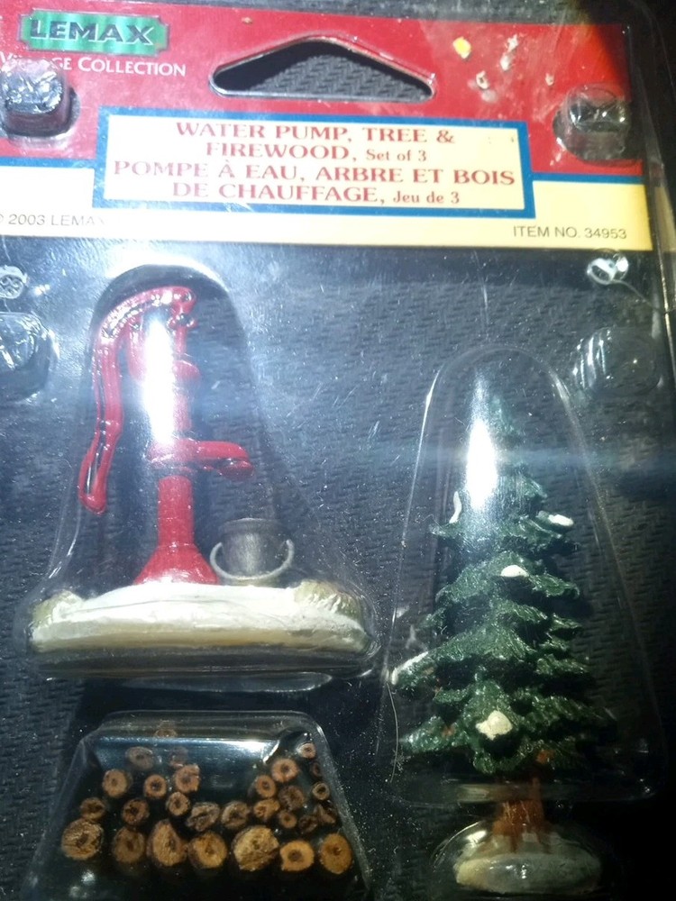 Enhance your holiday decor with the charming Lemax Well Pump Tree Firewood Set from the 2003 Village Collection. This delightful piece features a multi-color ceramic and porcelain construction, capturing the essence of a Colonial style with an asymmetrical shape that adds character to any room. The all-over pattern and intricate details reflect a timeless design, suitable for window, wall, stairs, or wardrobe display. A true treasure for collectors, this small-sized Christmas Village piece, #34953, remains in its original packaging, ensuring it's pristine and ready to be a part of your festive tradition. Although manufactured in the early 2000s, it retains its appeal with its hand-painted finish and boxed retirement, making it a must-have for those who appreciate the warmth and nostalgia of seasonal decor.