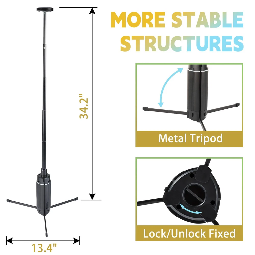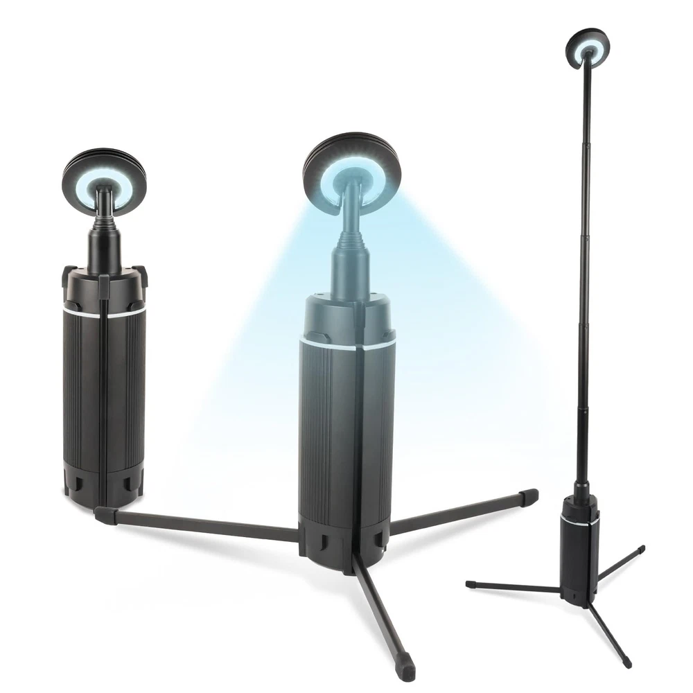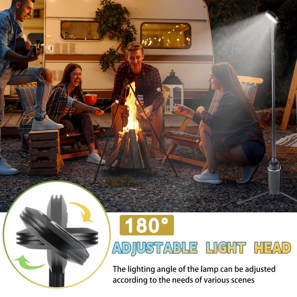 TELESCOPIC & SWIVELING: Rechargeable camping light combines telescopic, foldable and swiveling functions in an integrated design. The height of the camping lantern can be changed, the overall length of the camping light can be extended to 34.25 inches at the longest, and can be folded down to 8.6 inches at the shortest, which makes it easy to store and carry. In addition, the lamp head can rotate 360 degrees. It is very convenient to use and is a camping gear must-have! HIGH CAPACITY BATTERY: Built-in 10800mAh high-capacity rechargeable battery, fully charged in only about 5.5 hours. It can work continuously for more than 11 hours in strong light mode and more than 18 hours in low light mode. Also comes with a USB-Type C cable for charging your cell phone or other electronic devices. The portable LED light can also be used as an emergency backup power source in the event of a hurricane or power outage. 3 LIGHTING MODES: The camping lantern adopts COB lamp beads, which are high brightness, long life, and energy-efficient. Short press the power button to switch to 3 levels of brightness: Strong Light - brightness 800LM; Low Light - brightness 350LM; SOS - flashing light. Whether in a room, studio or outdoors, this multifunctional camp light provides high-quality illumination. PORTABLE & WATERPROOF DESIGN: This telescoping camping light is lightweight and easy to carry, an essential equipment for camping. Waterproof design allows for normal use in extreme weather conditions. Not only can be used as an indoor ambient light, flashlight, work light, SOS light, but also perfect for hiking, fishing, hunting, night walks, auto repair and power outages. STABLE STRUCTURAL: Metal tripod structure with a lock/unlock button design for more stability, making the electric lantern can be firmly placed on any ground and environment. Even in dimly lit environments, you can easily work independently! BUY WITH CONFIDENCE: We take the quality, durability and reliability of our products very seriously! If you have any questions about our camping lights & lanterns, please contact us immediately and we will do our best to solve the problem for you!