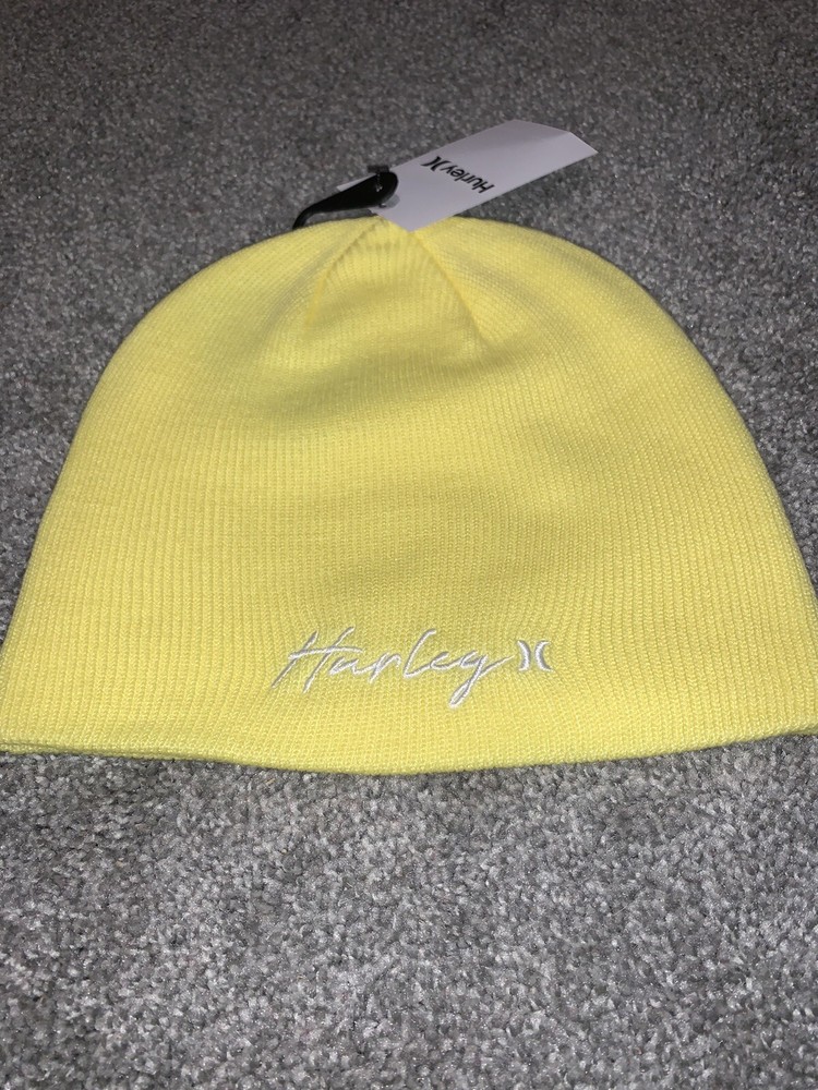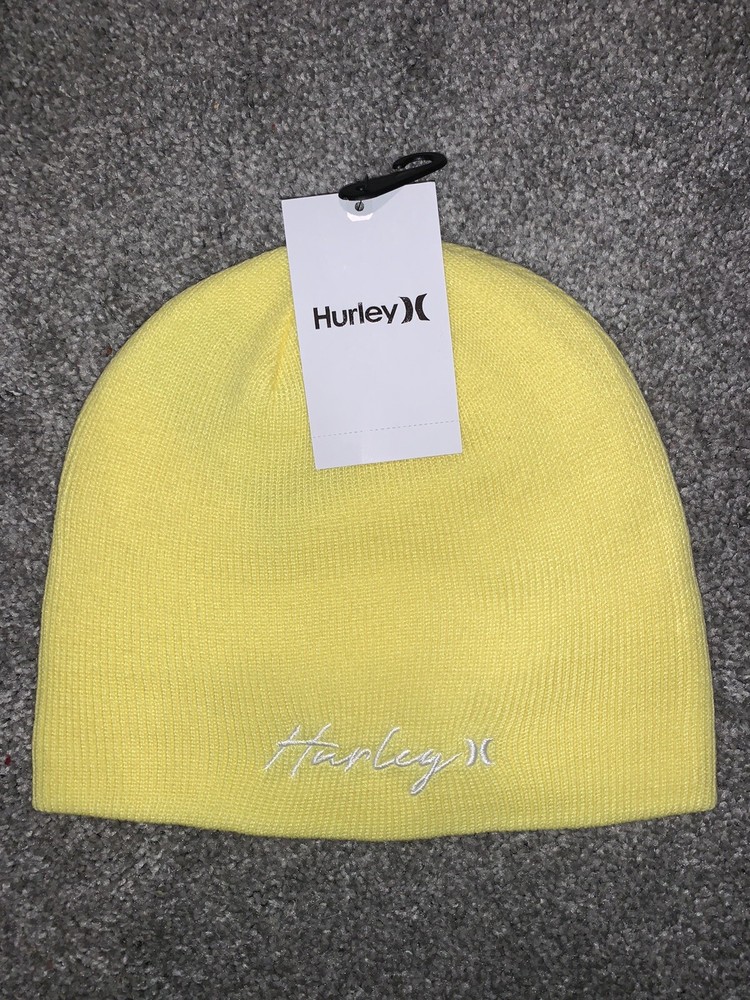 Lemon Yellow Hurley Signature Script Cuff Beanie Girls Winter Hat Toboggan. Also Can Be Unisex