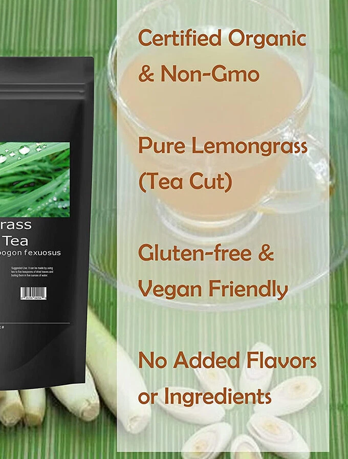 Condition:New: A brand-new, unused, unopened, undamaged item. See the seller's listing for full details Form:TC UPC:035239041821 Product:Tea & Infusion Regional Cuisine/Region:Indian Flavor:Licorice Brand:HELLOYOUNG Type:Herbal/Tisane Labels & Certifications:USDA Organic Food Specifications:Caffeine Free, Organic Country/Region of Manufacture:India Serving Size:1 Cup Item Weight:8.8 oz eBay Lemongrass Leaves Tea Organic - 8.8oz. Lemongrass tea does more than just make you feel good from within. Lemongrass is an aromatic storehouse of essential nutrients. The tea is made from the dried leaves or stalks of the lemongrass plant known by the botanical name Cymbopogom . The lemongrass plant grows in warmer temperatures and is native to South Asia. Lemongrass tea has long been a staple of Indian and traditional Asian medicine. It is frequently prescribed as a digestive aid. It is also packed with antioxidants. The health benefits of lemongrass include relief from stomach disorders along with many other ailments. It is a source of essential vitamins such as vitamin A, vitamin B1 (thiamine), vitamin B2 (riboflavin), vitamin B3 (niacin), vitamin B5 (pantothenic acid), vitamin B6 (pyridoxine), folate, and vitamin C. It also provides essential minerals such as potassium, calcium, magnesium, phosphorous, manganese, copper, zinc, and iron. This product is bulk Lemongrass Tea (loose), no tea bags are included. The loose leaves are tea bag cut and can be steeped directly in water. Our organic Lemongrass Tea is sourced in India and is USDA Certified Organic and non-Gmo. There are no additives, fillers, or any added ingredients. Gluten free, Vegan friendly. Your tea is packed in a safety-sealed food-grade resealable foil bag, which blocks out oxygen and light and therefore maintains maximum freshness and shelf-life. Suggested Use : To make lemongrass tea, pour 1 cup boiling water over about 1 to 3 tsp dried lemongrass tea. Steep for about 5 minutes, strain, and enjoy!