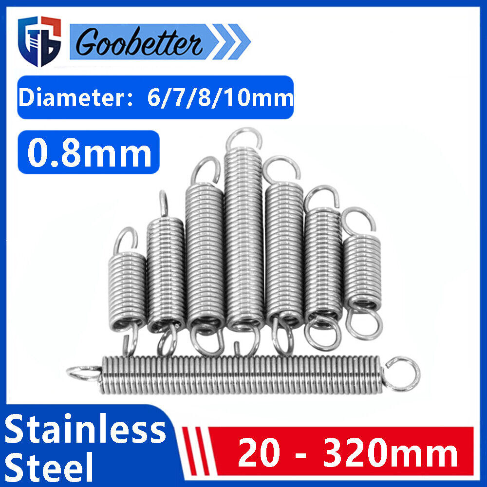 Product description Specifications: 【Features】- Springs occupy an important position in various markets. Stainless steel spiral compression spring, waterproof, rust-proof, durable. 【Application】- Widely used in shipbuilding, computer, electronics, automobile, chemical industry, aerospace, railway, wind power, thermal power, construction machinery, mining machinery, construction machinery, elevators and other fields. Wire diameter:0.8mm Diameter:6/7/8/10mm Length:20mm - 320mm Material:304 Stainless Steel