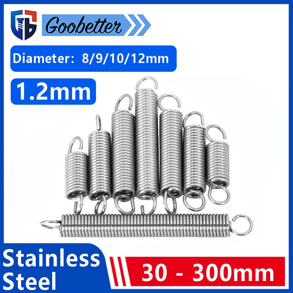 Length 30mm - 300mm 1.2mm Stainless Steel Hook Springs Extension Tension Spring