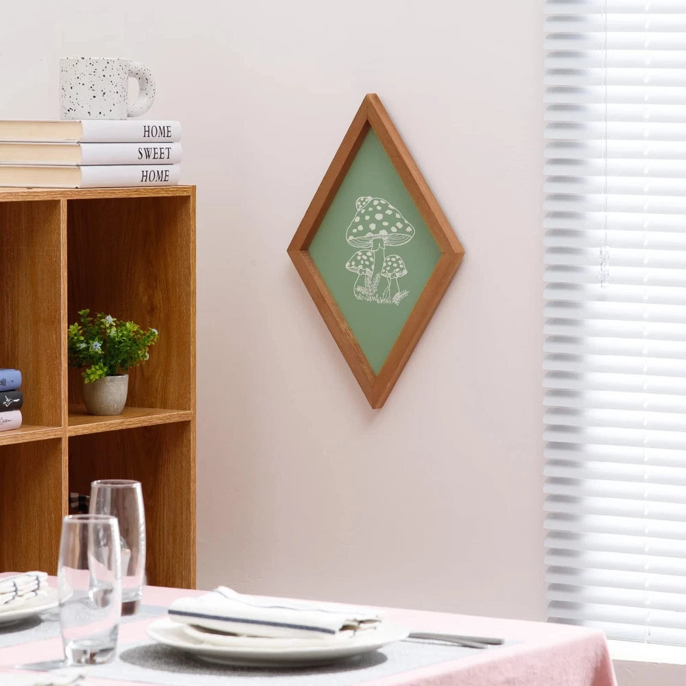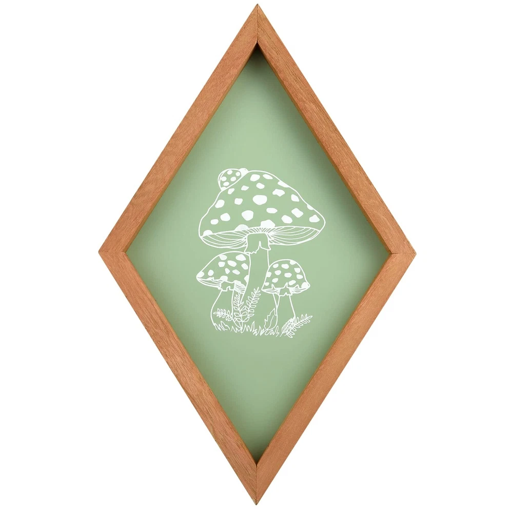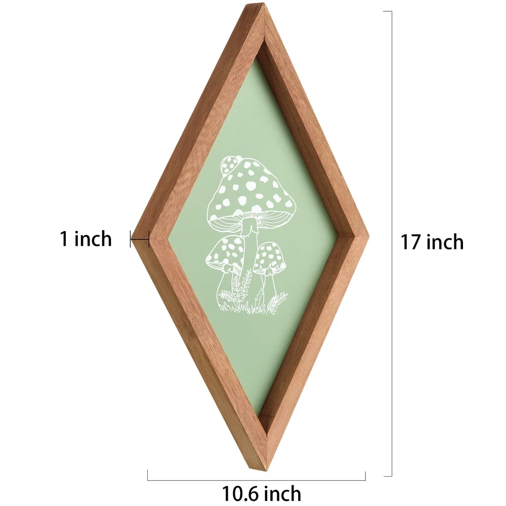 Lenkyin Sage Green Mushroom Wall Decor Farmhouse Home Wall Decor Wood Diamond Frame Mushroom Aesthetic Art Boho Decor for Living Room Office Dining Room Product Details Color: sage green Brand: Lenkyin MPN: Does not apply UPC: Does not apply EAN: Does not apply Product Dimensions: 17 x 10.6 x 0.2 inches Item Weight: 12 ounces Country of Origin: China Date First Available: March 15, 2023 Diamond Design:Printed with mushroom onto sage green wood board ,the diamond mushroom wall decor features a stunning diamond design that is both unique and eye-catching. The diamond pattern adds a touch of sophistication to any room, making it the perfect addition to your home decor. Handcrafted with Care:Hand made by carpenters using high-quality wood,the mushroom wall art is nice stability and durability. Wood frame is sanded, stained,distressed to ensure a long lasting display Easy to Hang:The mushroom wall art is easy to hang thanks to its lightweight design and included mounting hardware. The wooden frame has a sawtooth hanger on the back, making it simple to hang on any wall Wood frame measures approximatly 10.6x17 inches,thickness in 1 inch. .Creates a Farmhouse Look:Our mushroom poster has a charming, rustic appearance that adds warmth and character to any space. The natural wood grain gives the artwork a warm and organic feel, while the muted green color of the mushrooms adds a touch of nature Makes a Room Feel Cozy:Hang this mushroom decor in your apartments, bedrooms,living rooms,kitchen, porches or in any place you like to create cozy and inviting space .Its natural materials and rustic appearance create a warm atmosphere, perfect for relaxing or spending time with loved ones This rustic mushroom wall art is perfect for anyone who loves nature and wants to bring a touch of the outdoors inside. They are also great for anyone who wants to support sustainable and eco-friendly products while adding a unique and stylish touch to their decor. Whether you choose to display them on a wall, shelf, or table, these mushroom decorations are sure to add a touch of natural beauty and charm to your home.