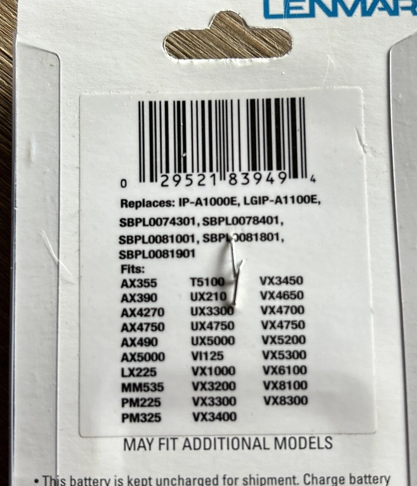 UPC: 029521839494 Capacity: 900 mAh MPN: 83949 Brand: Lenmar gtin13: 029521839494 Type: Internal