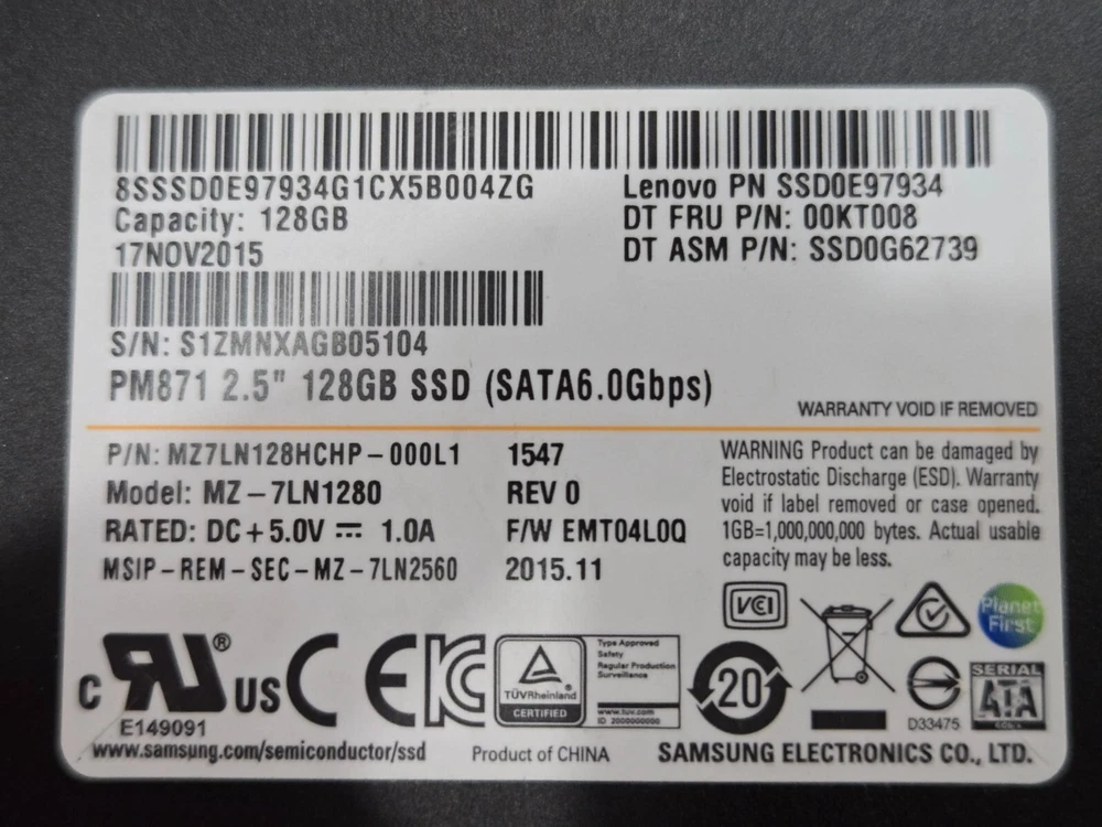 Lenovo 00KT008 128GB SSD SSD0E97934