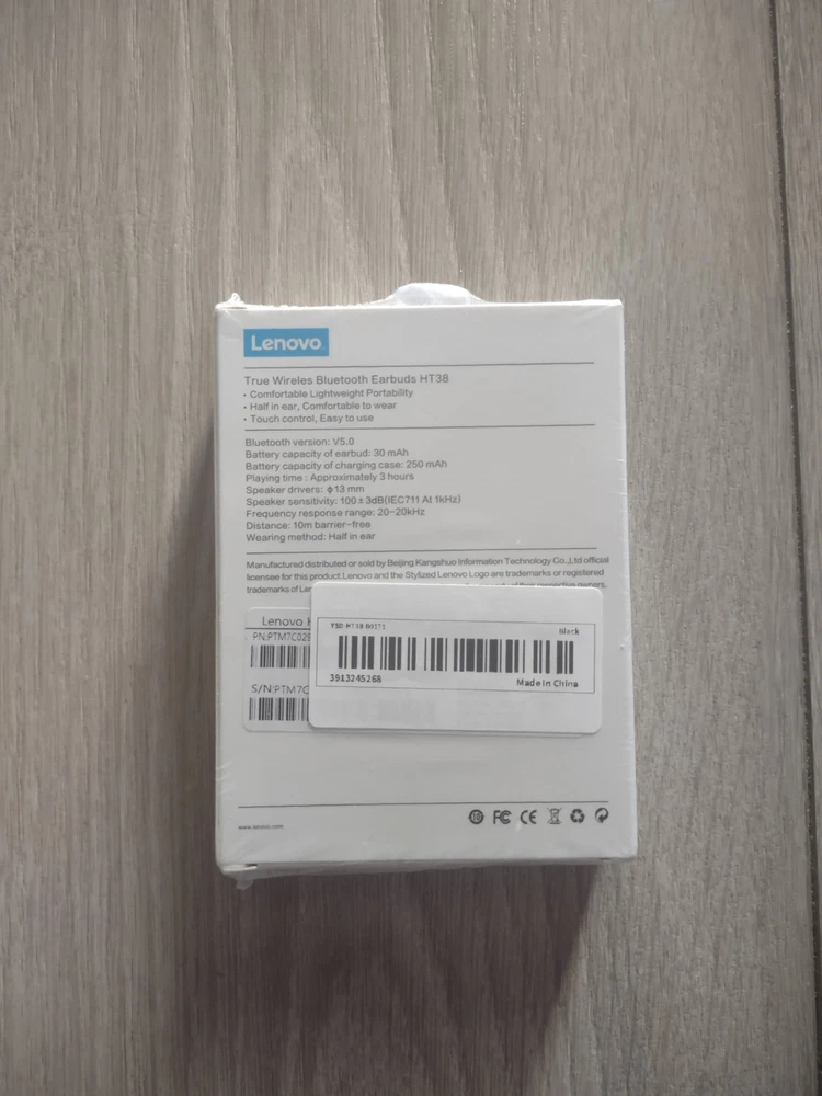 Color: Black Number of Earpieces: Double Microphone Type: Built-In Brand: Lenovo Model: Lenovo HT38 Connectivity: Bluetooth Form Factor: In-Ear Only Features: Rechargeable Battery, Volume Control, Call functions, Touch Control, Stereo, Built-in Microphone, Wireless Wireless Technology: Bluetooth Type: Earbud (In Ear) Suitable For: Any audio device. Country/Region of Manufacture: China