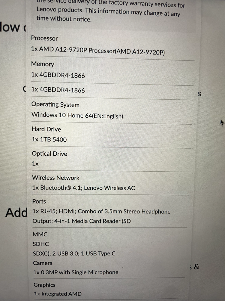 comes with charging cord. see pics for full specs (used serial number for lookup on lenovo website)