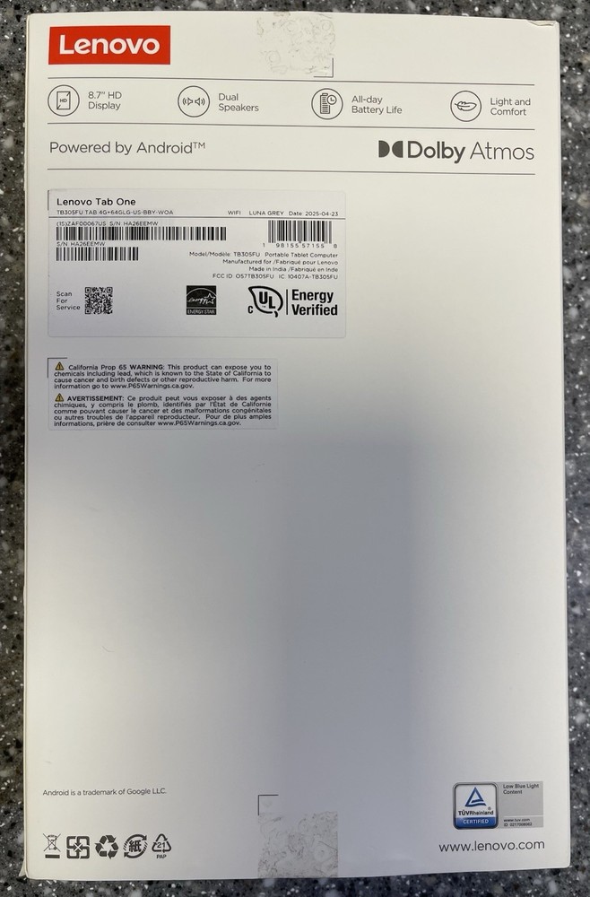 Lenovo Tab One 8.7" Tablet 64GB Luna Grey