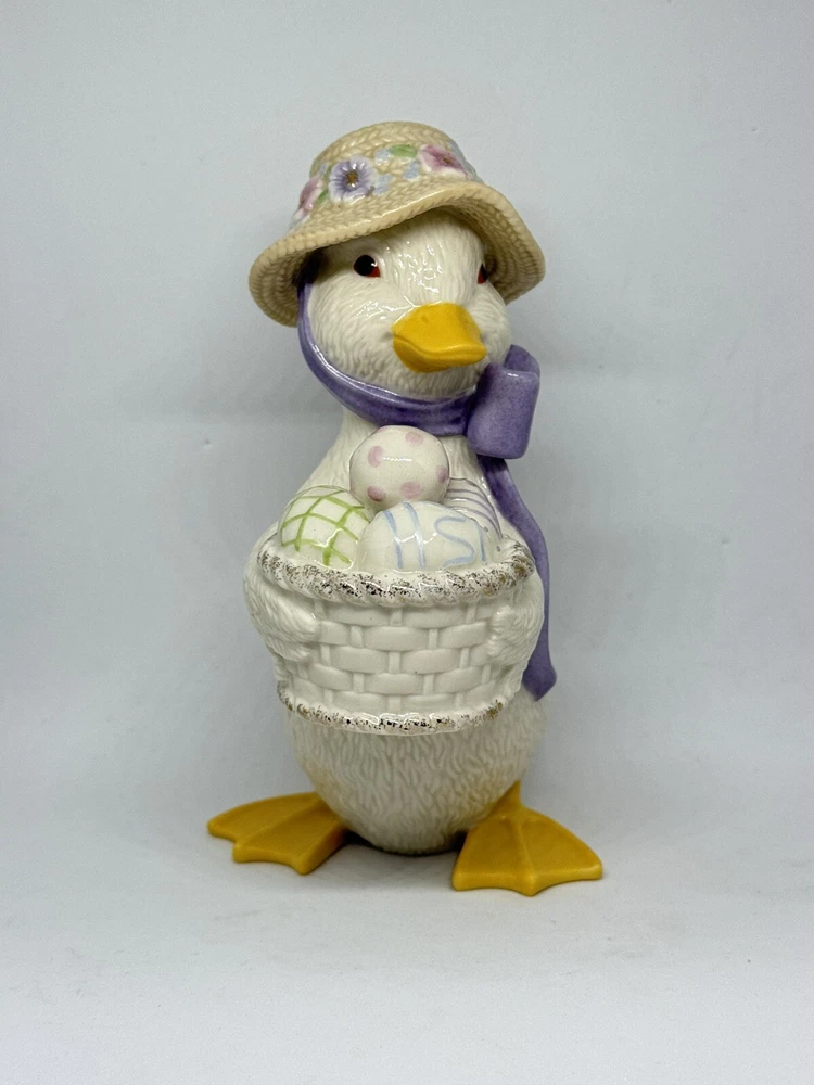 This Lenox Easter Collection figurine features a cute and colorful duck animal wearing a bonnet and holding a basket of eggs. Made of high-quality bone china, this small figurine measures 5 inches in length and 3 inches in width. It is perfect for adding a touch of traditional charm to your Easter decor or as a collectible item for adults. The multicolor duck figurine is a loose figure no box and comes from the Lenox brand. It is part of the Easter Collection and has a glossy finish. The piece is designed with a farm animal and seasonal theme, making it a great addition to any collection. Whether you're a collector or looking for a unique decoration, this Lenox figurine is sure to delight. Note: Item is in mint condition no cracks, no chips or damage! Item has been well cared for in a display case! It does not have the original packing or box! It will be packed with care! Thank you for stopping by!