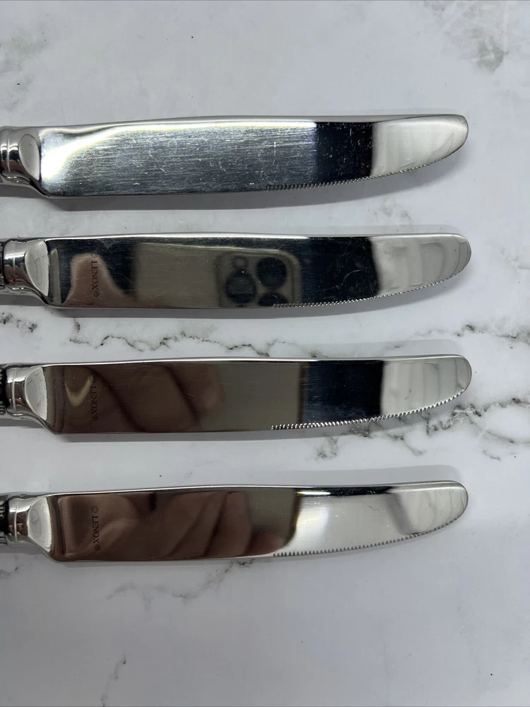 Thank you for looking, message with any questions. This is a set of four Lennox archway ?dinner knives, see photos for condition and length.