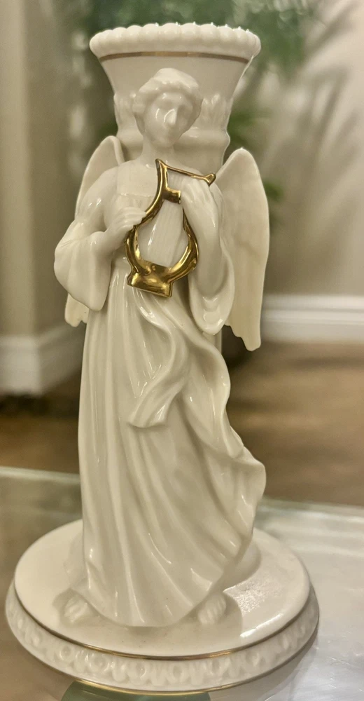 Lenox "Angel Holding Harp" Candlestick Holder with Gold Trim / Accents