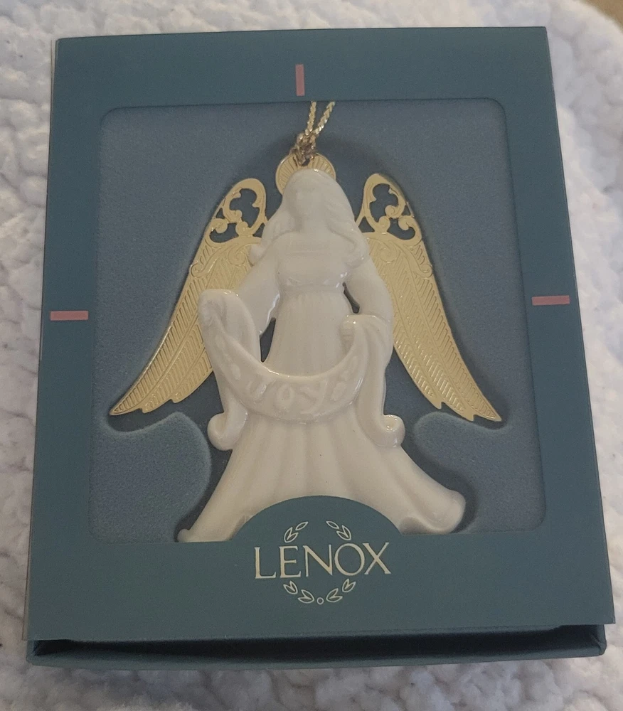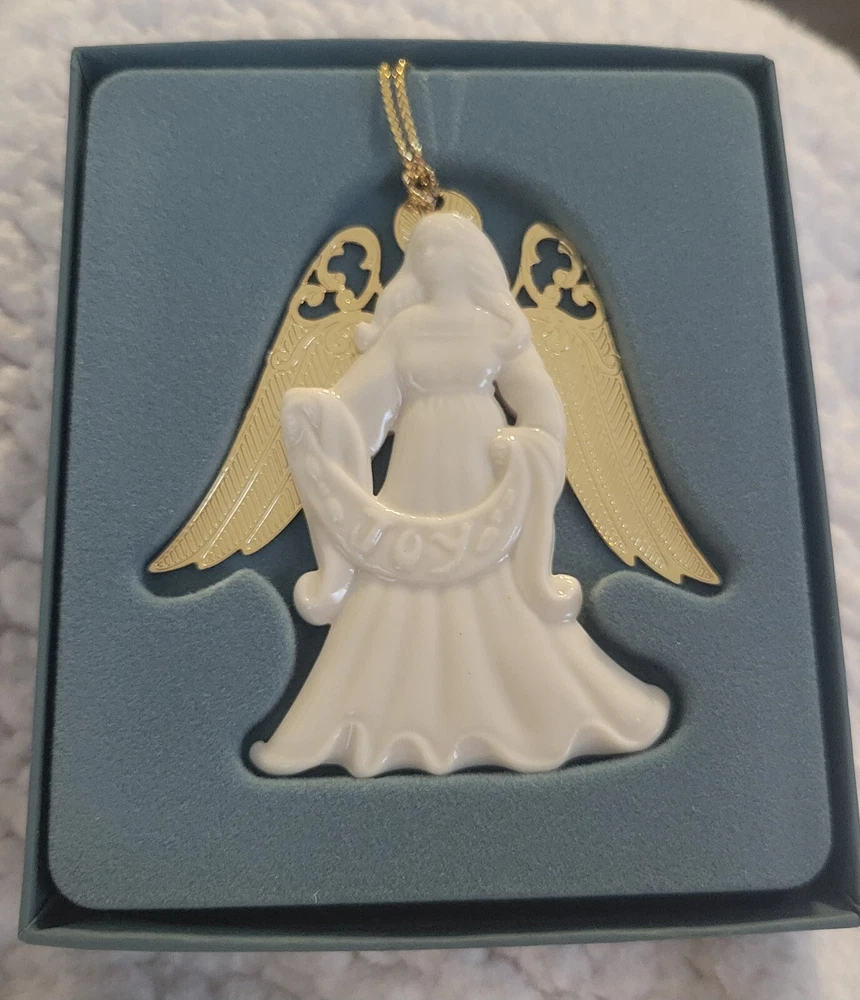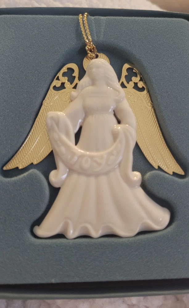 New in the original box 1994 Lenox Gold Angel Joy Ornament - These have been stored for many years so the Box will show wear but the ornament is in original new condition. Smoke free home