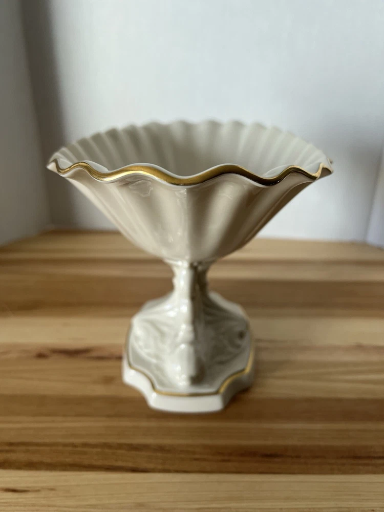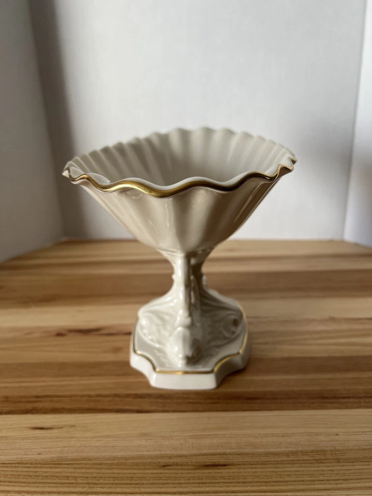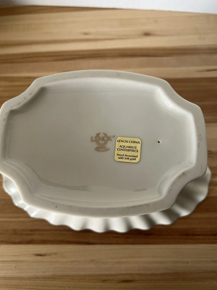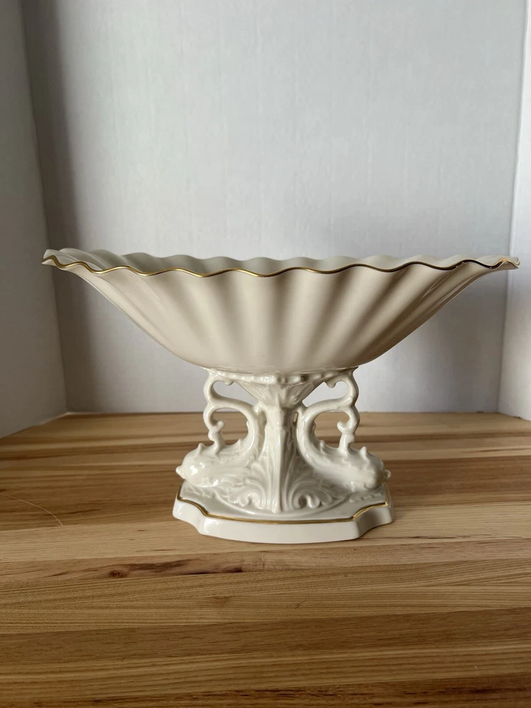 Lenox Aquarius Dolphin Centerpiece Porcelain Gold Trim Bowl 12" and 7" tall
