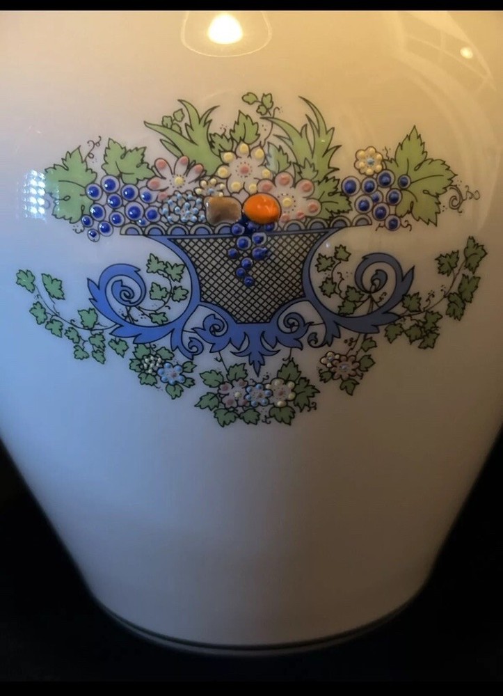This beautiful Lenox China vase is a must-have for any collector or decorator. The vase is made of porcelain and features a stunning floral pattern with 24K gold trim and raised enamel decor. Measuring 8 inches tall and 5 inches wide, this medium-sized vase is perfect for displaying flowers or other decorative items. The vase is an original piece from the 1990s and was made in the United States. It is in excellent condition and is perfect for all occasions. The vase is signed by the artist and is an original piece. Don't miss your chance to own this beautiful vase!