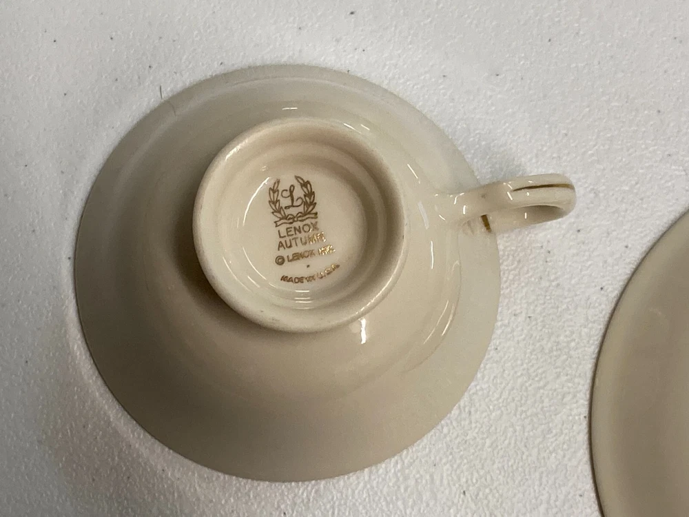 Lenox Autumn Footed Tea Cup w/ Saucer 24Kt Trim Ivory Bone China USA Gold Stamp good lightly used shape as shown no chips or cracks **US Shipping Only** w/ tracking number Check out our Store