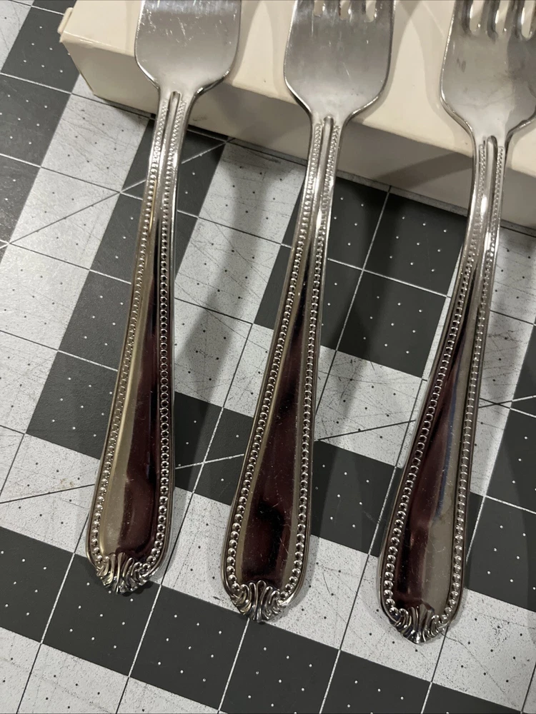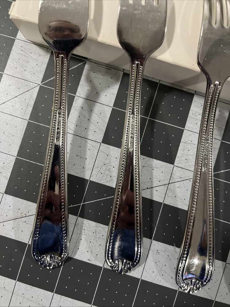 Lenox Bead Plume (3) Dinner Forks 18/10 Stainless Flatware Replacements