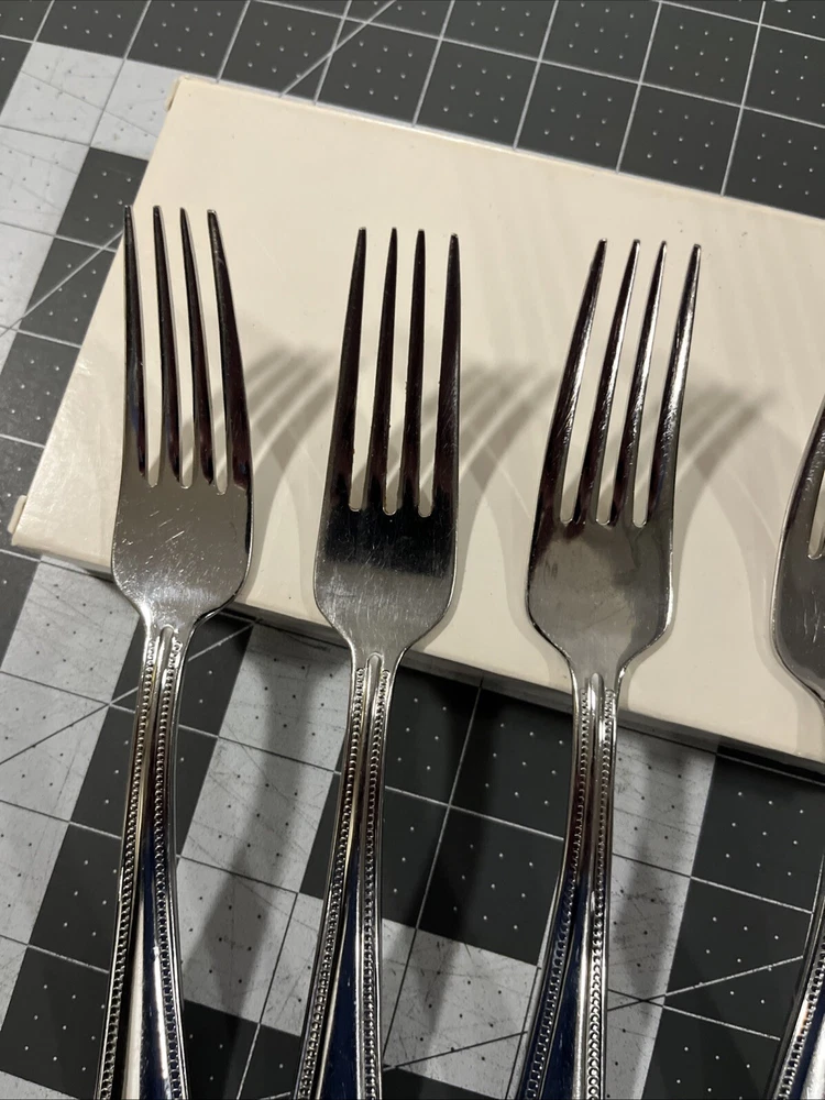 Lenox Bead Plume (4) Dinner Forks 18/10 Stainless Flatware Replacements