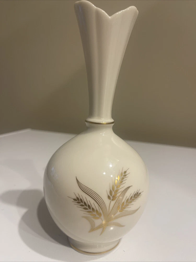 Model:Bud VaseMaterial:PorcelainFinish:PatternedUPC:Does not applyDepartment:Adultsgtin13:Does not applyTime Period Manufactured:1920-1949Style:Mid-Century ModernFeatures:Does not applyPattern:Harvest WheatGlassmaking Technique:Does not applyTheme:Does not applyNumber in Pack:1Country/Region of Manufacture:United StatesSize:Small (up to 12in.)Subject:Harvest WheatBrand:LenoxShape:RoundColor:White & GoldType:Vase