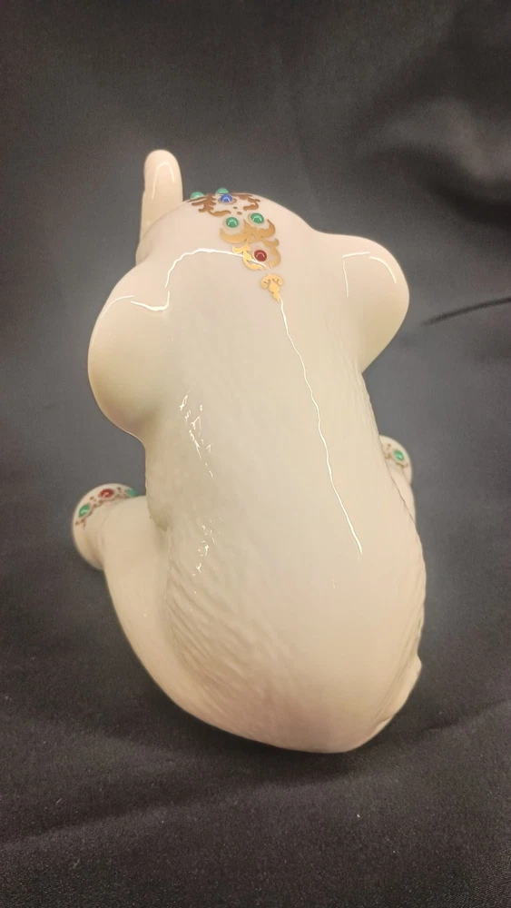 The Lenox China Jewels Collection Sitting Elephant Figurine was manufactured in the United States in 1992. Made of porcelain, this figurine features a gold finish adorned with jeweled enamel accents. Measuring 4.75 inches in length, 4.25 inches in height, and 4 inches in width, it weighs 7.7 ounces and is part of the Animals collection by Lenox. This figurine depicts a charming elephant, adding a touch of elegance and whimsy to any decor with its intricate detailing. Thank you for visiting my listing today and thank you for your interest in this item! My goal is to have a pleasant transaction resulting in a satisfied customer. I hope any transaction between us leaves you with a feeling of confidence knowing you can trust me and the items I offer here. *Most if not all my listings are set to accept offers. Feel free to send an offer and I will be happy to consider it!! *Please contact me with any questions or concerns and I will be happy to help. *Always examine the photos carefully, and if in doubt, email me with any questions you may have. *Please note that condition statements are offered as a guide only. They will always be somewhat subjective and reflect our opinion, which may not necessarily agree with someone else's opinion. PLEASE READ: I aim to please and I want my buyers to have a positive transaction with me. If you have questions, concerns, or special requests related to any of my items I hope you will contact me so we can work them out to your satisfaction. I sell my items to give you a great item at a decent price while making a little profit at the same time. If you feel the item you are interested in is too pricey do not hesitate to send me a fair offer and I will consider it. My goal is to satisfy your needs and mine so both parties can benefit. SHIPPING: If you prefer a different shipping method or company please contact me and I will do all I can to make that happen. If you have concerns or requests about the packaging of your item contact me and I will do all I can to accommodate them. Shipping costs are based on location in each state or country, the costs always differ. After I have received your payment I will ship your item out within 3 business days or less excluding weekends and holidays. BEFORE PURCHASING & BIDDING: **Please see all the pictures. I do not have great photography skills but I try to get the most accurate photos I can. If you are unsure about something you see in a photo contact me so I can do what I am able to answer your concern about the item. **I cannot stress enough that if you have any questions or concerns please contact me before purchasing and bidding. Communication can solve so much. **As a customer myself, I understand the meaning of customer satisfaction and my goal is to have nothing but satisfied customers. If you are not unsatisfied with your purchase I ask that you please contact me so I can take care of your issue. My goal is for you to be 100% satisfied. INTERNATIONAL BUYERS WELCOMED - PLEASE NOTE: I welcome International buyers! Please be aware that any custom/duties/taxes that the parcel might incur once it is out of the USA are the responsibility of the buyer. Please check with your country's customs office to determine what these additional costs will be prior to bidding or buying. Please refer to the eBay Site Map for more information if needed.