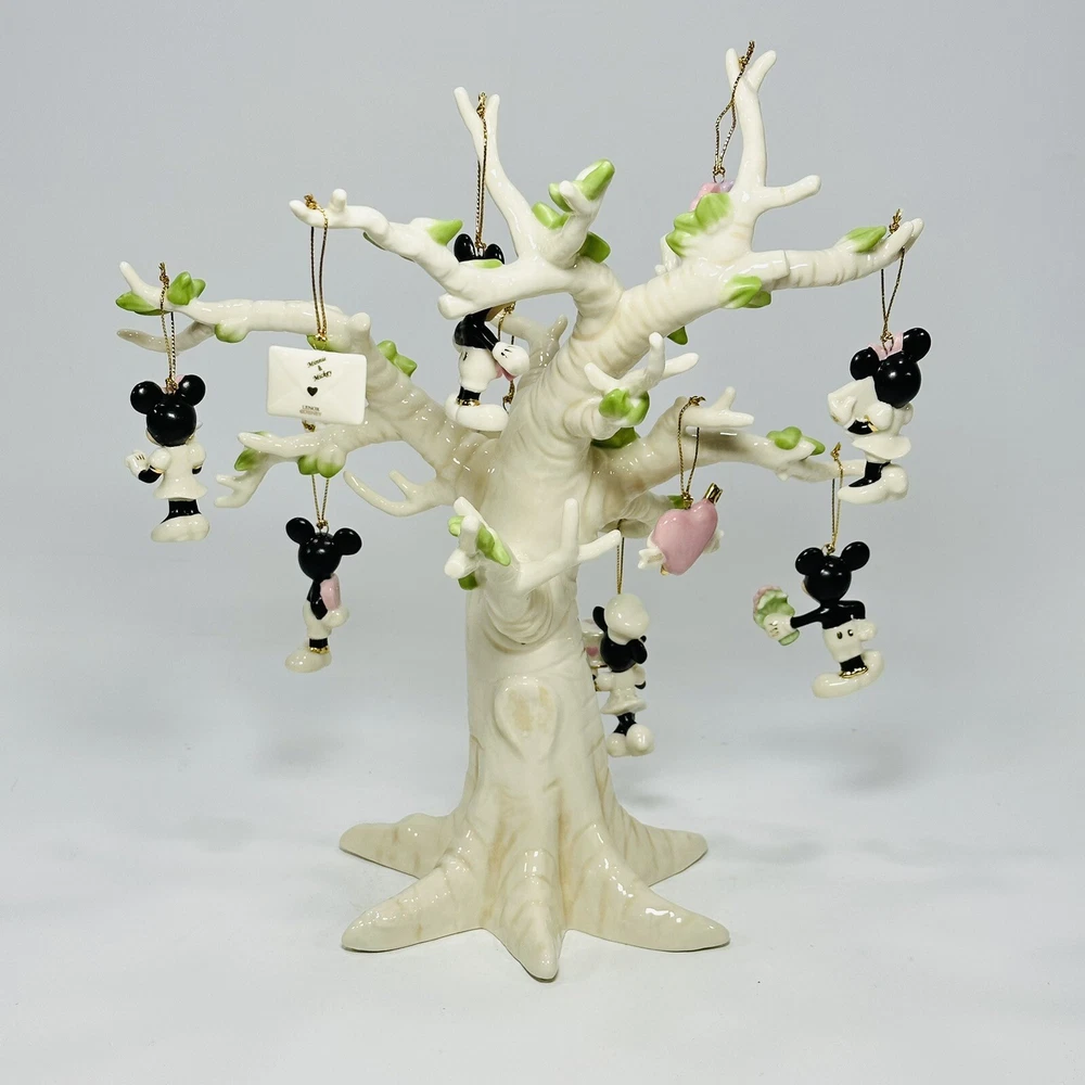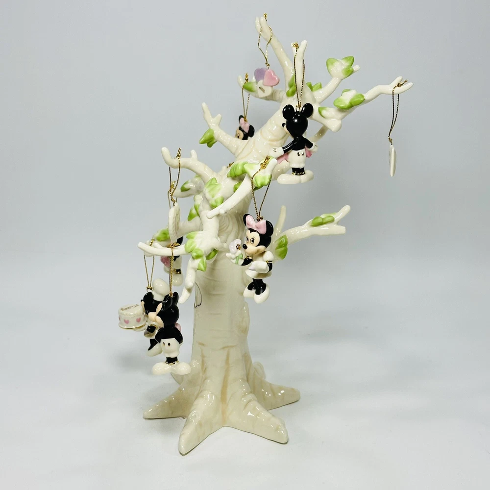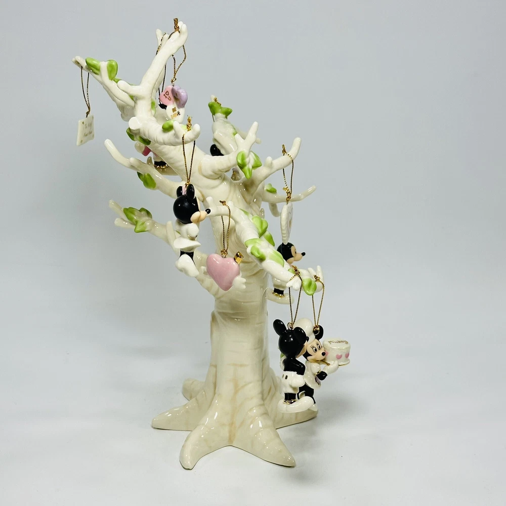Lenox Disney Romantic Moments Tree Set Mickey Minnie Mouse New Open Box. *Styrofoam does have some damage. Also 2 ornaments or damaged, Minnies nose broke off and mickeys arm broke off, see photos.*
