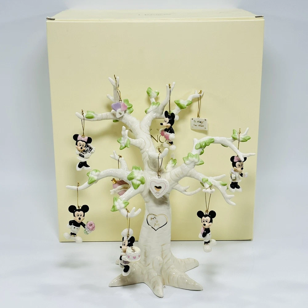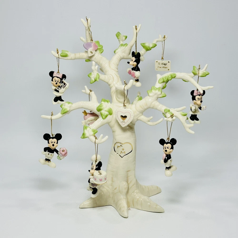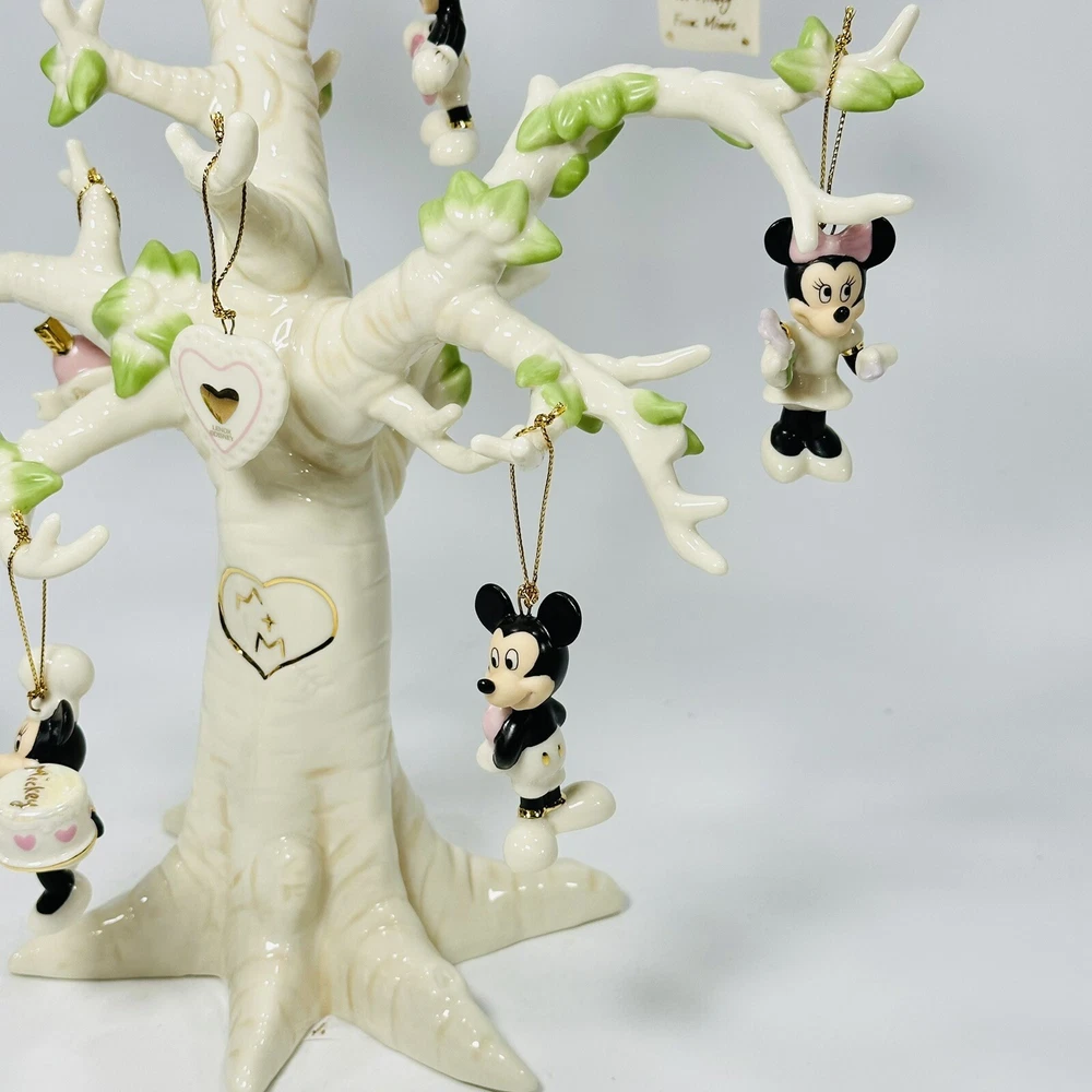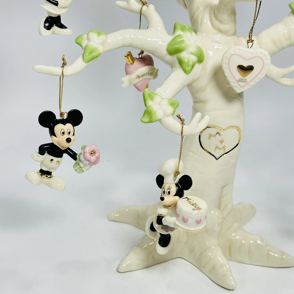 Lenox Disney Romantic Moments Tree Set Mickey Minnie Mouse New Open Box. *Styrofoam does have some damage. Also 2 ornaments or damaged, Minnies nose broke off and mickeys arm broke off, see photos.*