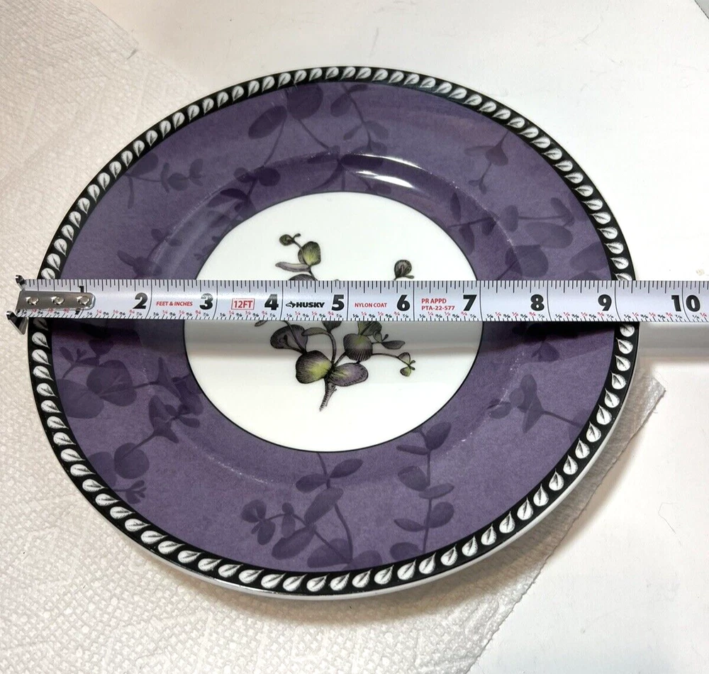 Lenox Etchings Eucalyptus Accent Luncheon Plate Catherine McClurg 9.5 inch In good used condition with no chips or cracks noted but does have some wear around the inner rim. Please see photos and ask for more if needed.