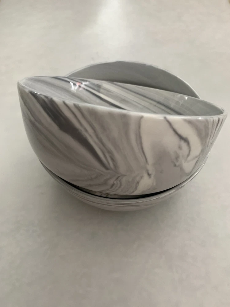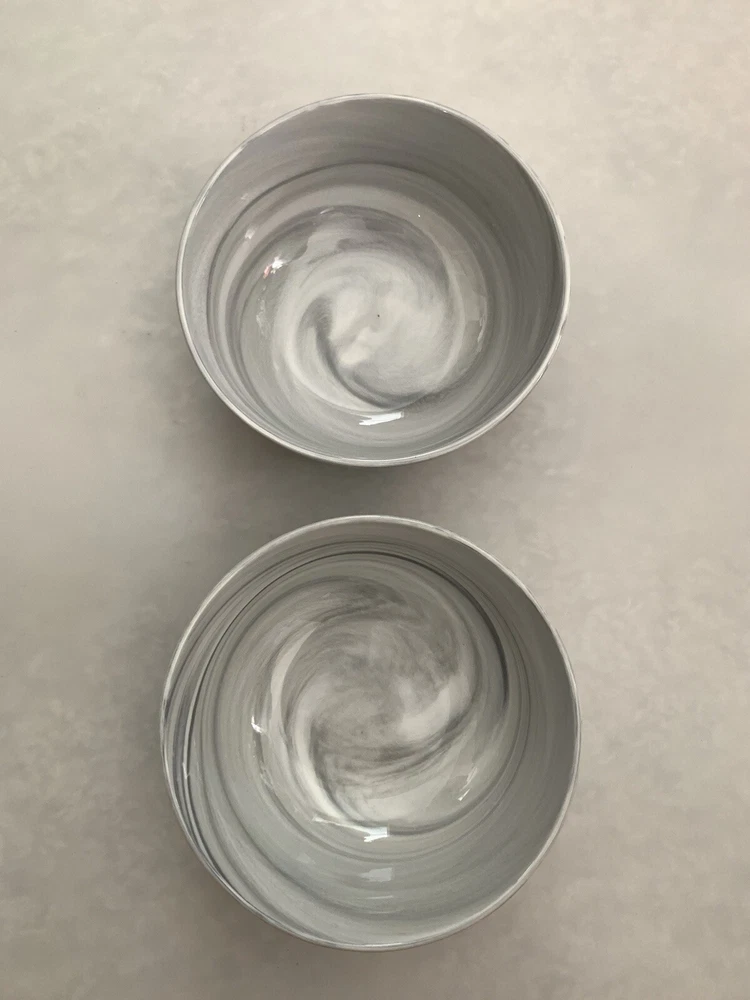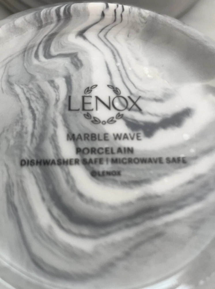Very good condition. This set of 2 Lenox Gray Marble Wave Porcelain Bowls features a stylish Marble Swirl pattern, making them a chic addition to any dining table. The bowls are round in shape and have a diameter of 5 1/4 inches, perfect for serving soups, salads, or snacks. They are made of high-quality porcelain, ensuring durability and a microwave and dishwasher-safe design for convenient use. Perfect for everyday meals or special occasions, these Lenox bowls combine elegance with functionality for a versatile addition to your dinnerware collection.
