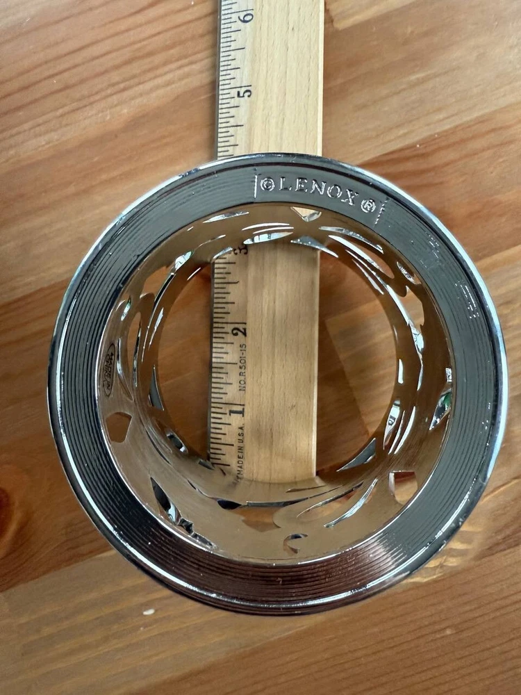 A beautiful metal candle holder. Please note that it a single-unit item and it doesn't come with a glass candle holder. Diameter 2.75 in and will work with candles 2.7 in wide. Candle is not included in the price and listed for demo purposes only.