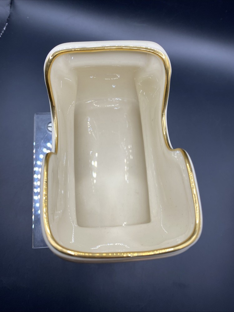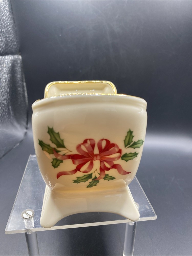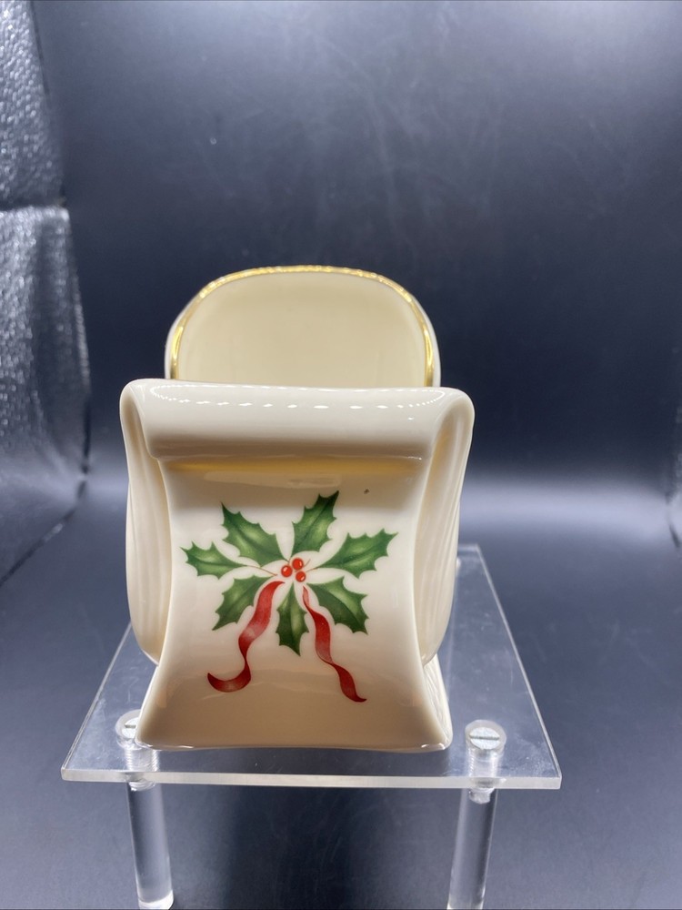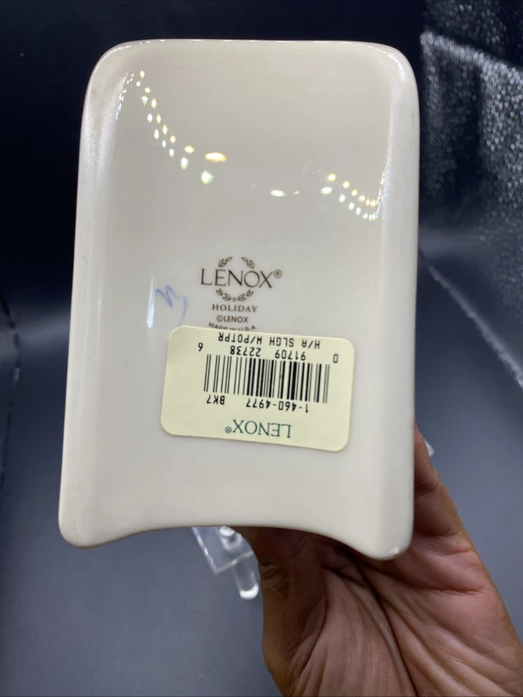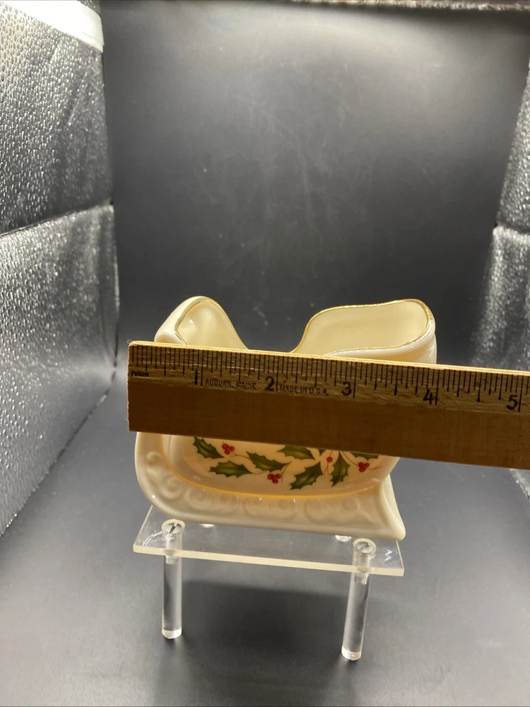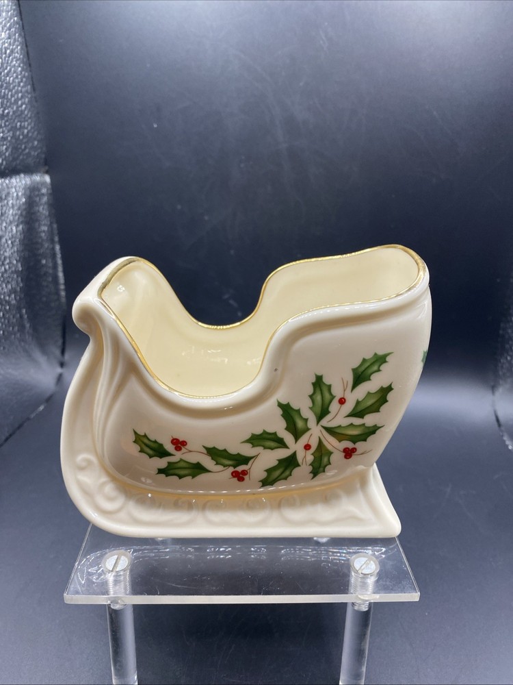 The Lenox Holiday Collection Vintage USA Holly Berry Centerpiece Christmas Sleigh is a collectible holiday decoration made of fine bone china, ceramic, and porcelain. This elegant ivory/off-white piece was manufactured in the United States in 1990 and features a festive holly berry design, perfect for adding a touch of Christmas charm to any home decor. With its vintage appeal and classic design, this centerpiece is sure to be a cherished addition to any holiday collection.