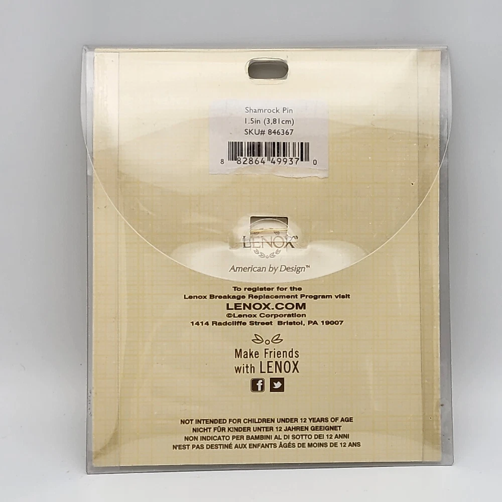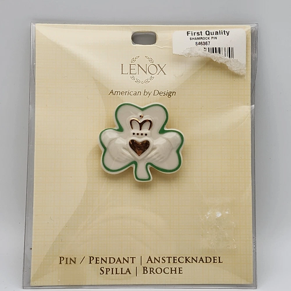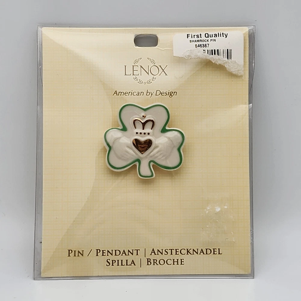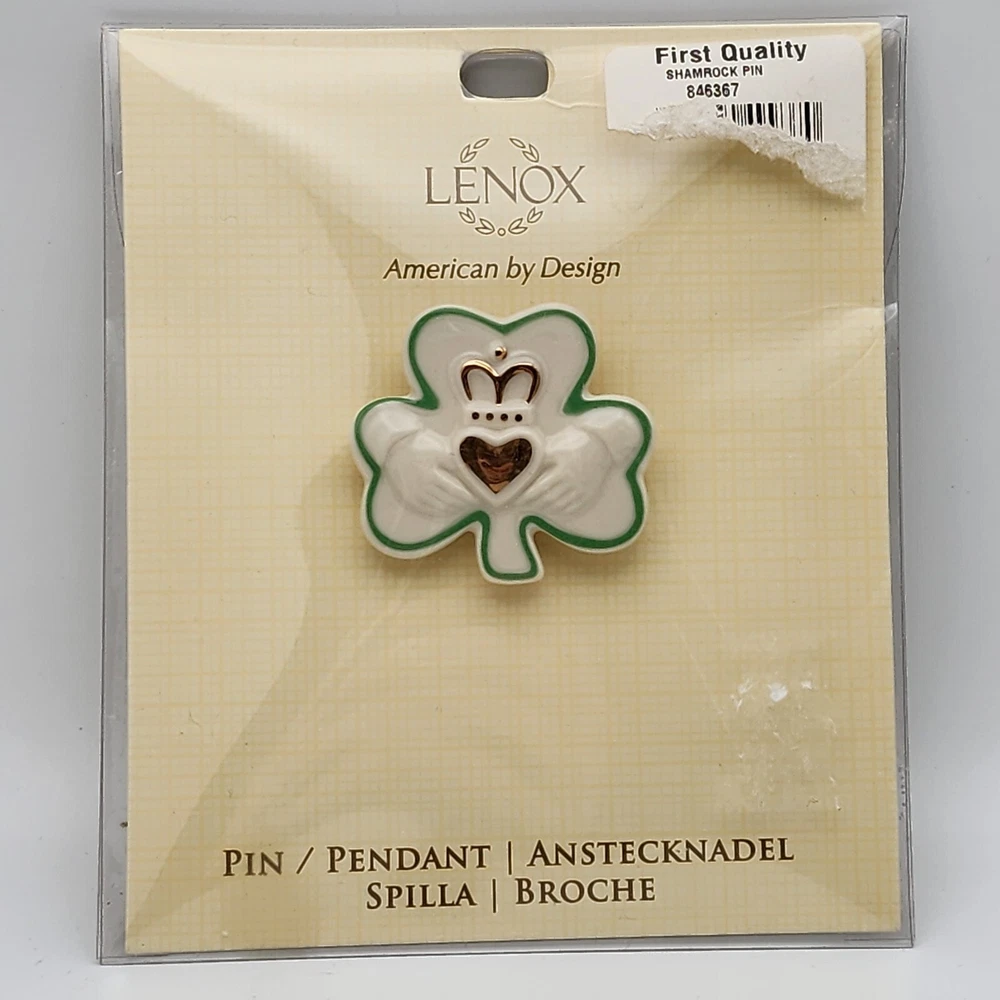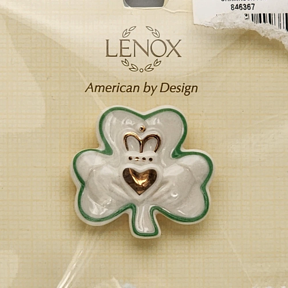 Lenox Irish Shamrock Porcelain Claddagh Pin Gold Green Accents St. Patrick's Day New In Package Original Price Was $35.00