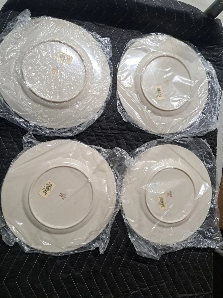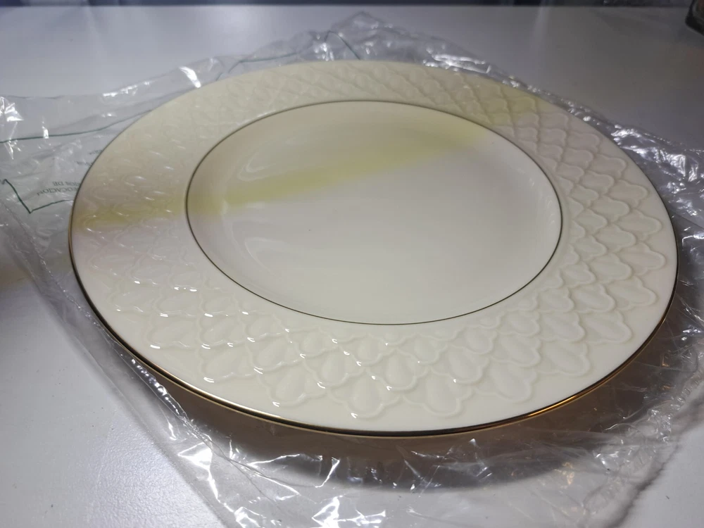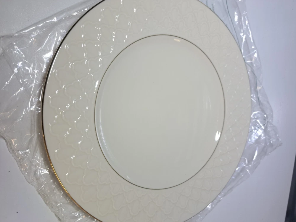 4 Lenox Jacquard Gold' 10-7/8" Dinner Plates. Fish Scale Textured Sealed. Excellent condition. See photos. * I opened 1 for detailed pictures*