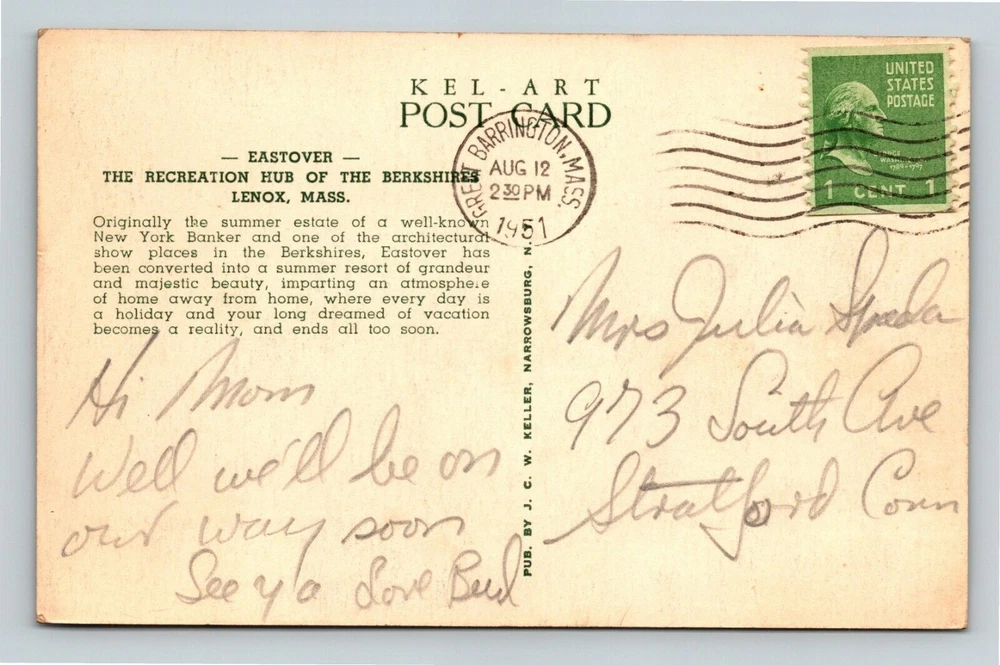 City: See Detailed Scan Type: Printed (Lithograph) Region: See Detailed Scan Circulated: Yes Original/Licensed Reprint: Original Theme: Cities & Towns Unit of Sale: Single Unit City/Region: Lenox Country/Region of Manufacture: Unknown Era: See Detailed Scan Postage Condition: Posted Continent: North America Subject: See Detailed Scan Country: See Detailed Scan