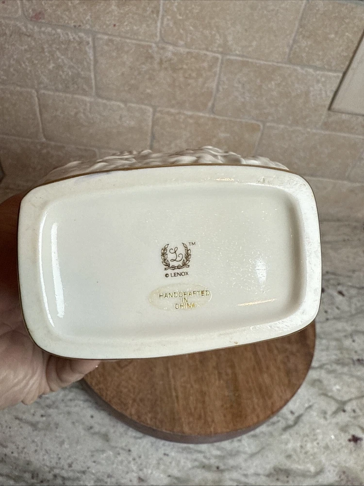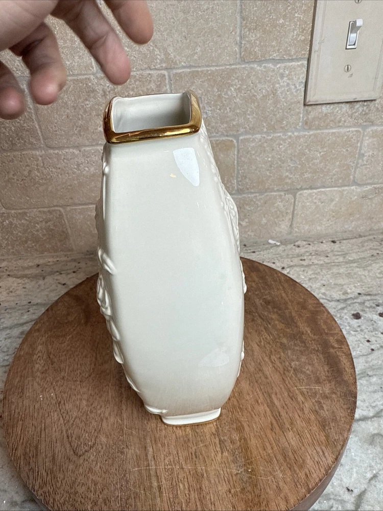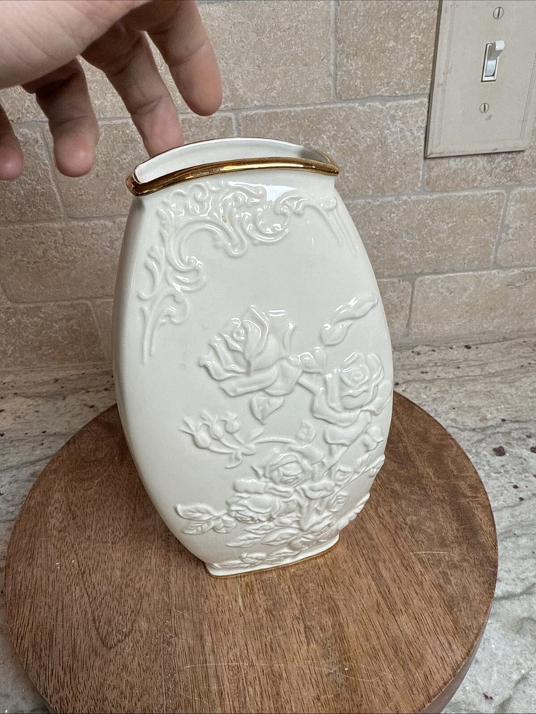 This exquisite Lenox Masterpiece vase is a true masterpiece with its beautiful floral pattern and elegant 24K gold trim. The ivory porcelain vase measures 8 1/4" in height and features a medium size that makes it perfect for displaying flowers or other decorative items. The embossed finish adds a touch of sophistication to the vase, making it a great addition to any collection. Made in China, this table vase is a perfect example of Lenox's craftsmanship and attention to detail. The brand is known for producing high-quality porcelain items, and this vase is no exception. Its classic design and timeless appeal make it a great gift for any occasion or a lovely addition to your own home decor.