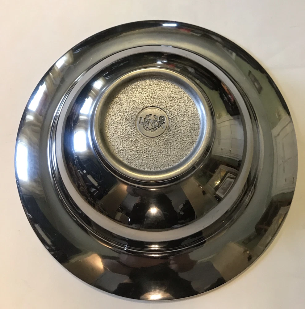 This Lenox Fruit Bowl is a stunning piece that will elevate the look of any table setting. The bowl is made of high-quality metal with a beautiful metallic finish, and measures 12.75 inches in diameter. It features a unique abstract pattern and a silver color, making it a great addition to any collection or as a statement piece on its own. The bowl is perfect for serving fruits, salads, or as a decorative item. It comes from a smoke-free home and is in excellent condition. If you're looking for a beautiful and functional piece to add to your collection, this Lenox Metal Fruit Bowl is a great choice.