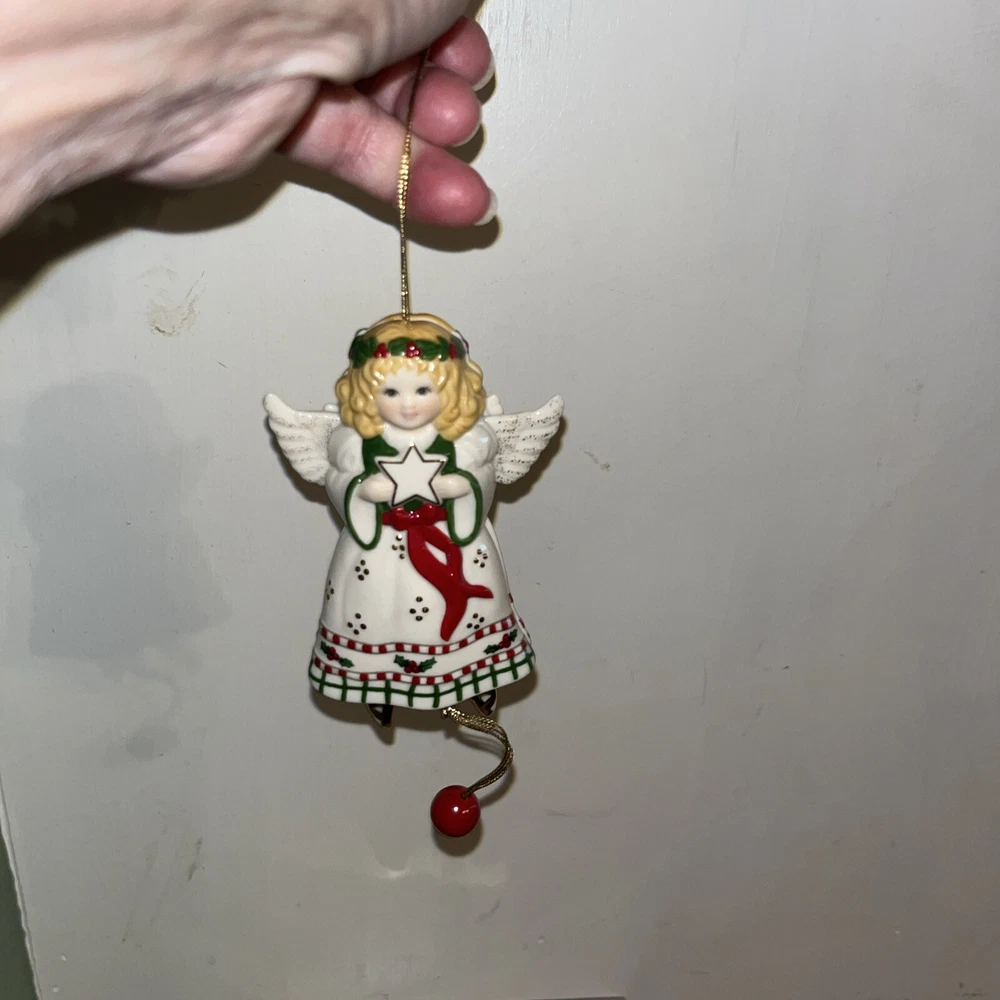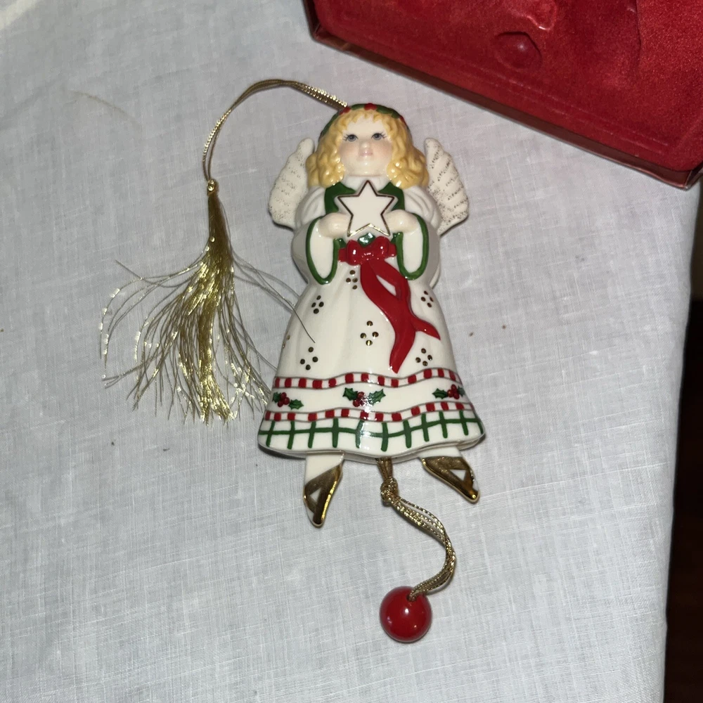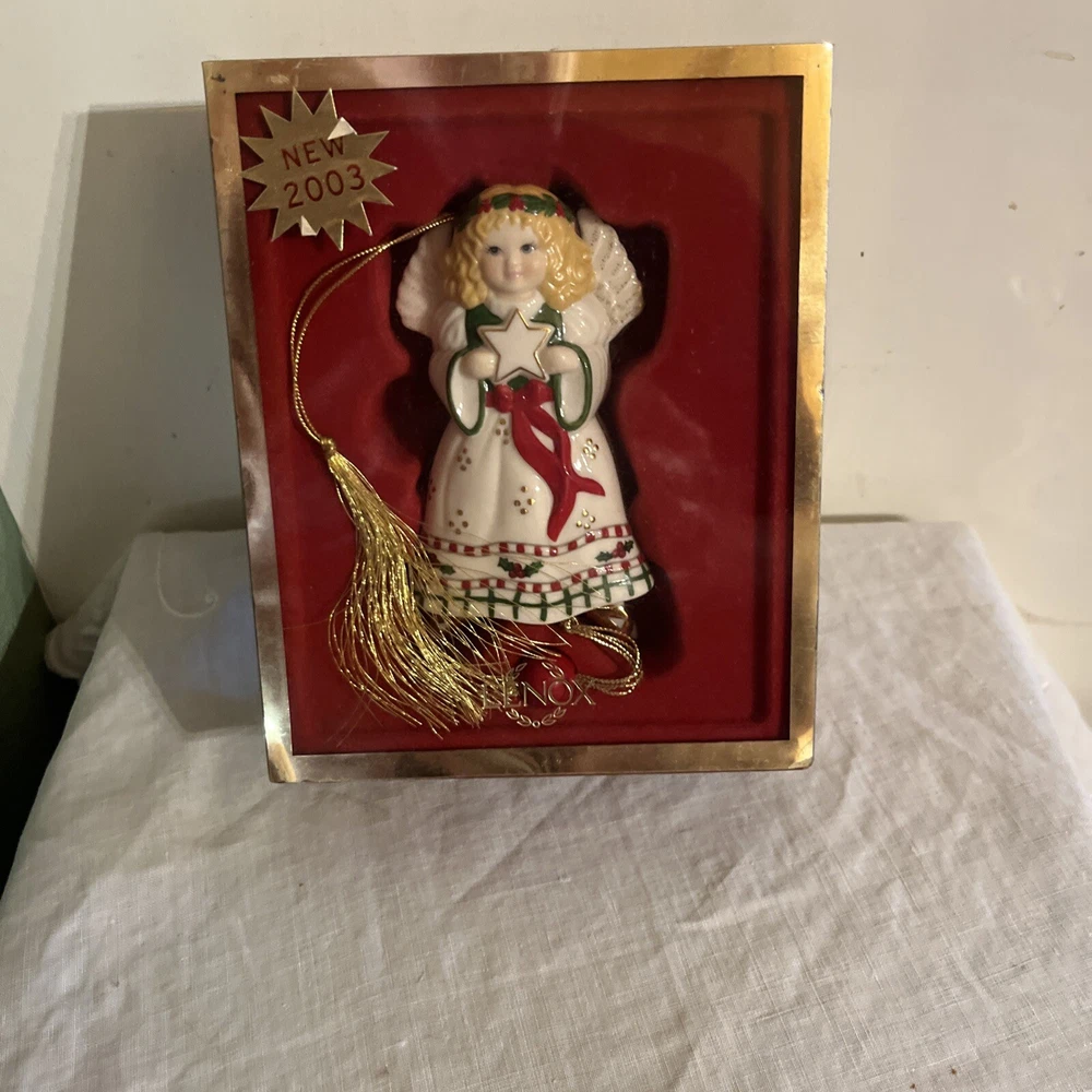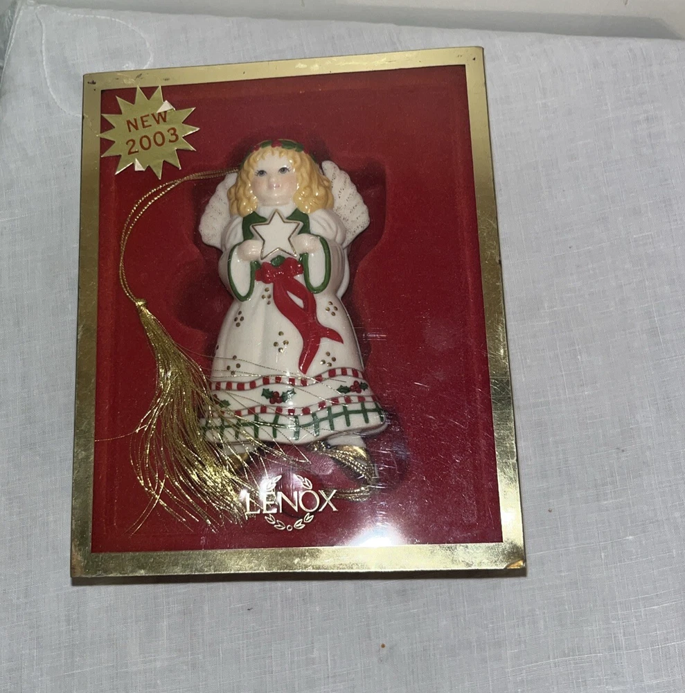 Add a touch of elegance to your Christmas tree with this beautiful Lenox Movers And Shakers Angel Ornament from 2003. This vintage ornament features an angelic shape with a custom design and an all-over multicolor pattern. It is made of high-quality porcelain, bone china, and ceramic materials.