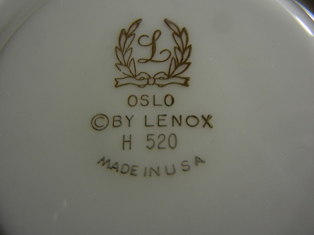 Manufacturer: Lenox China - Made in America Pattern: Oslo - Pattern H520 Item: Cup and Saucer Set Size: Cup: 2" tall x 4" diameter. Saucer: 6" diameter Condition: Excellent. Shipping for domestic and Canadian rates can be found in the item description. We will ship international and rates will be determined by location.