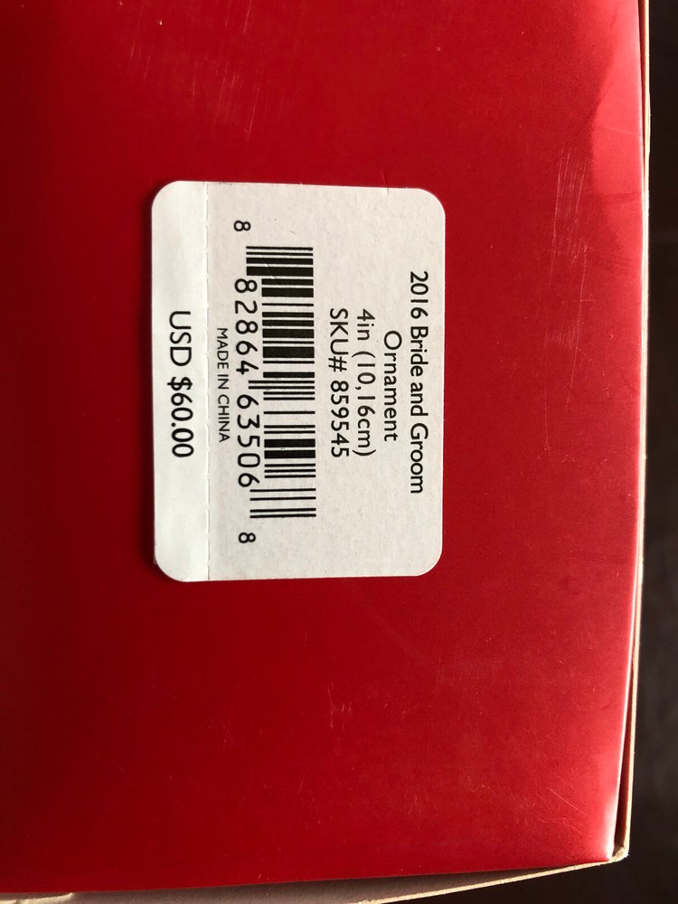 This Lenox Porcelain Bride and Groom Ornament features intricate detailing and a gold tassel for hanging. Made of high-quality porcelain, this ornament is sure to last for years to come.This ornament is perfect for those who love unique and collectible items, as it is a part of the 2016 collection of Lenox Ornaments. It makes a great gift for newlyweds or as a special addition to your own holiday decorations. The ornament is brand new and comes in its original box.