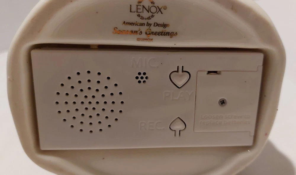 This lovely Lenox figurine features a charming snowman. The porcelain material and white color make it a beautiful display piece for any room. This small figurine comes unboxed and is part of the American by Design collection. It allows you to record a custom message. Brand new batteries included. It would make a great gift for any adult who loves seasonal decor. The figurine is an original piece from China and has not been customized. It is perfect for collectors of decorative collectibles and sculptures & figurines. Don't miss out on adding this delightful snowman to your collection!