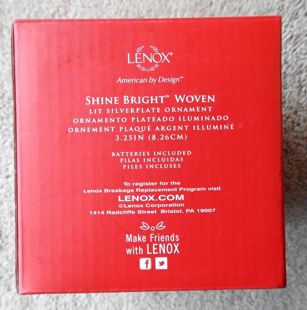 Seller Notes: “This Ornament is Beautiful on the Tree Will not Light Up Box is Nice” Subject: Shine Bright Woven Silverplate Brand: Lenox Type: Ornament UPC: 8 82864 50708 2 gtin13: 8 82864 50708 2