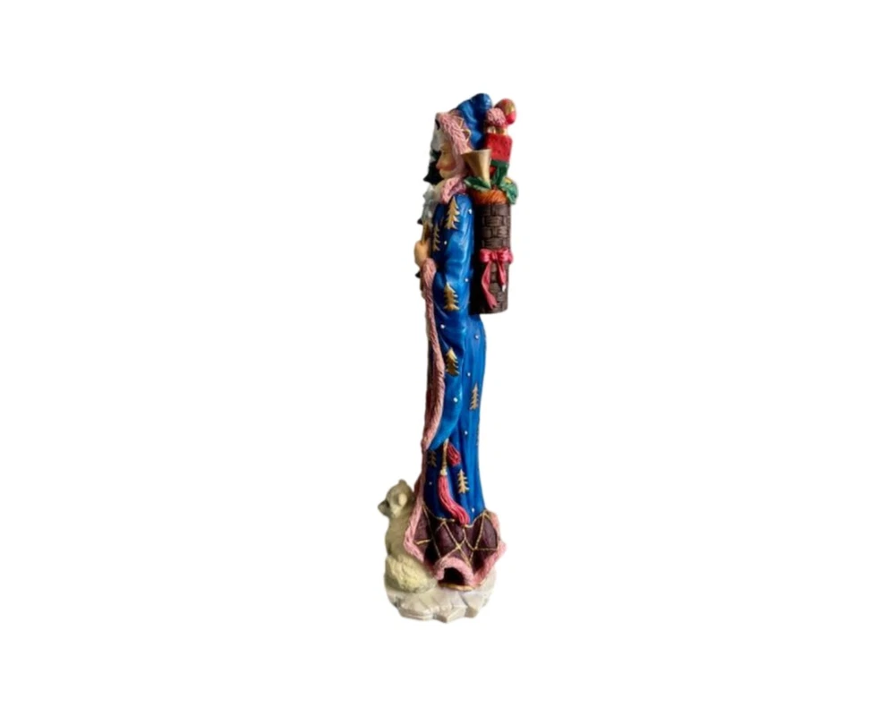 The Lenox The Snow King Pencil Santa figurine is a medium-sized collectible depicting Santa Claus in a snow-themed design. Made of resin and hand-painted, this Santa figurine stands at 13 inches tall and is part of the Pencil Santa collection by Lenox. With a multicolor finish and a Santa Claus character theme, this original piece from the year 2000 features intricate detailing, making it a charming addition to any Christmas or holiday decor.