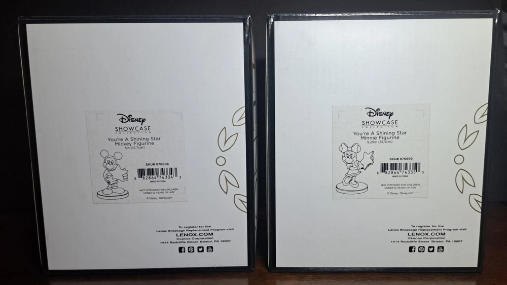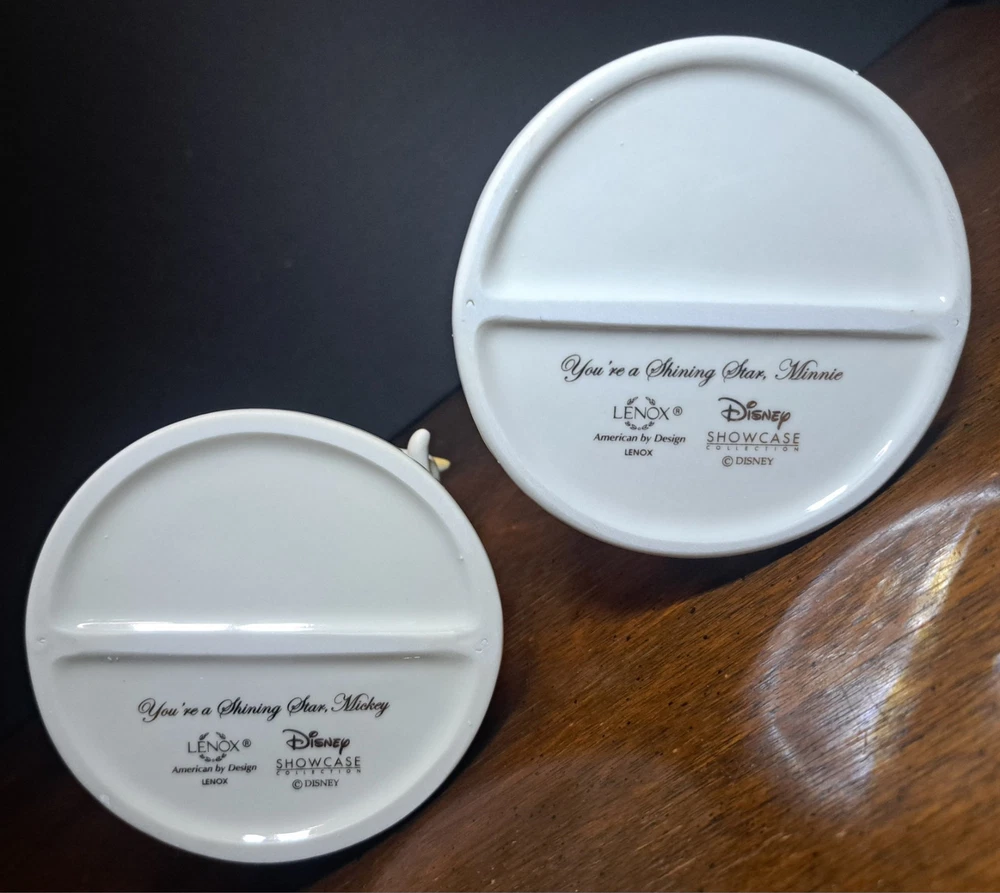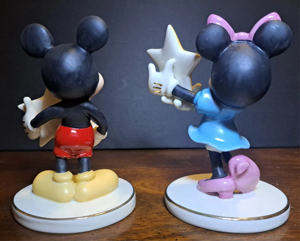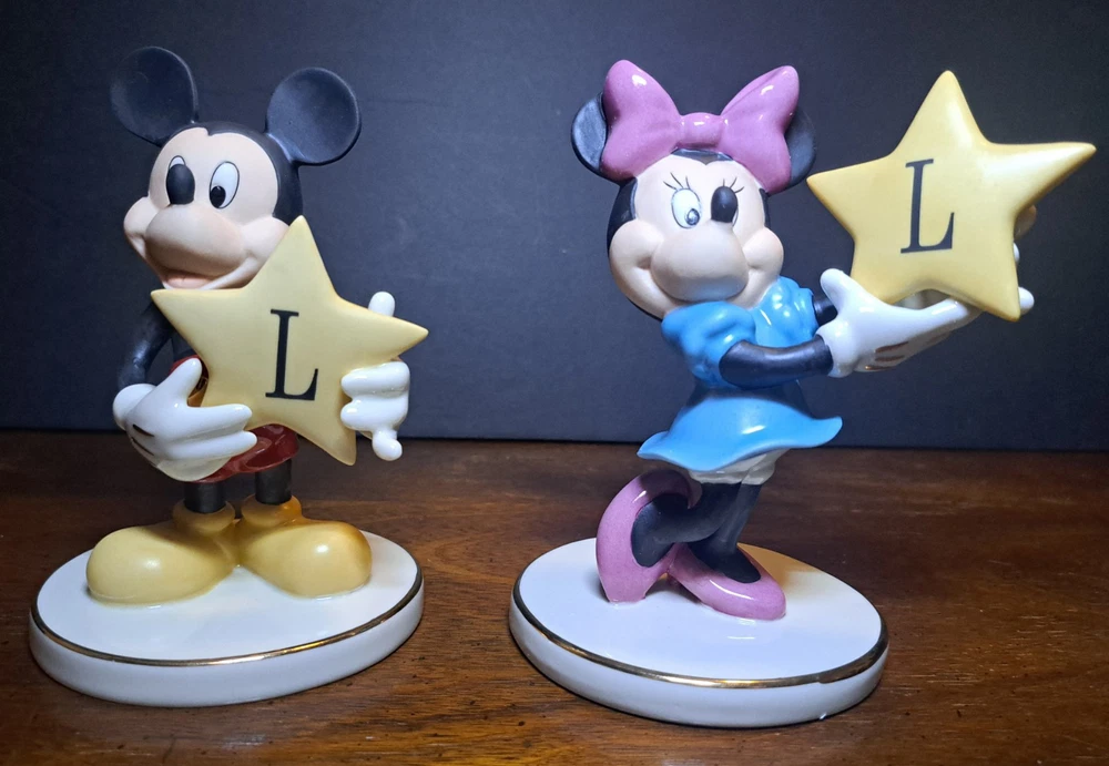 Lenox You're A Shining Star Mickey & Minnie Mouse Porcelain Figurines. The letter L in the stars on each. Both are 5.25" and have original boxes. New open box, see photos. *Minnie doesn't have certificate of authenticity *