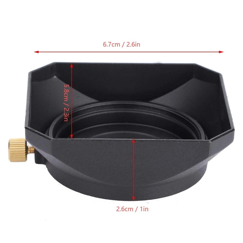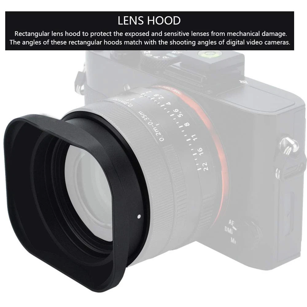 Features: Rectangular lens hood to the exposed and sensitive lenses from mechanical damage. The angles of these rectangular hoods match with the shooting angles of digital video cameras. Made from high impact plastic, light-proof, improving your contrast and image quality of photos. Lightweight and portable, easy to carry and . Suitable for all kinds of cameras and DV with same mount thread. Specification: Condition: 100% Brand New and High Quality Color: black Material: plastic Options: 37mm, 39mm, 40.5mm, 43mm, 52mm Dimension: Approx. 6.7*5.8*2.6cm / 2.6*2.3*1in Weight: Approx. 23-33g Package List: 1 * Lens Hood (and other items are not included) Rectangular lens hood to the exposed and sensitive lenses from mechanical damage The angles of these rectangular hoods match with the shooting angles of digital video cameras Made from high impact plastic, light-proof, improving your contrast and image quality of photos Lightweight and portable, easy to carry and Suitable for all kinds of cameras and DV with same mount thread