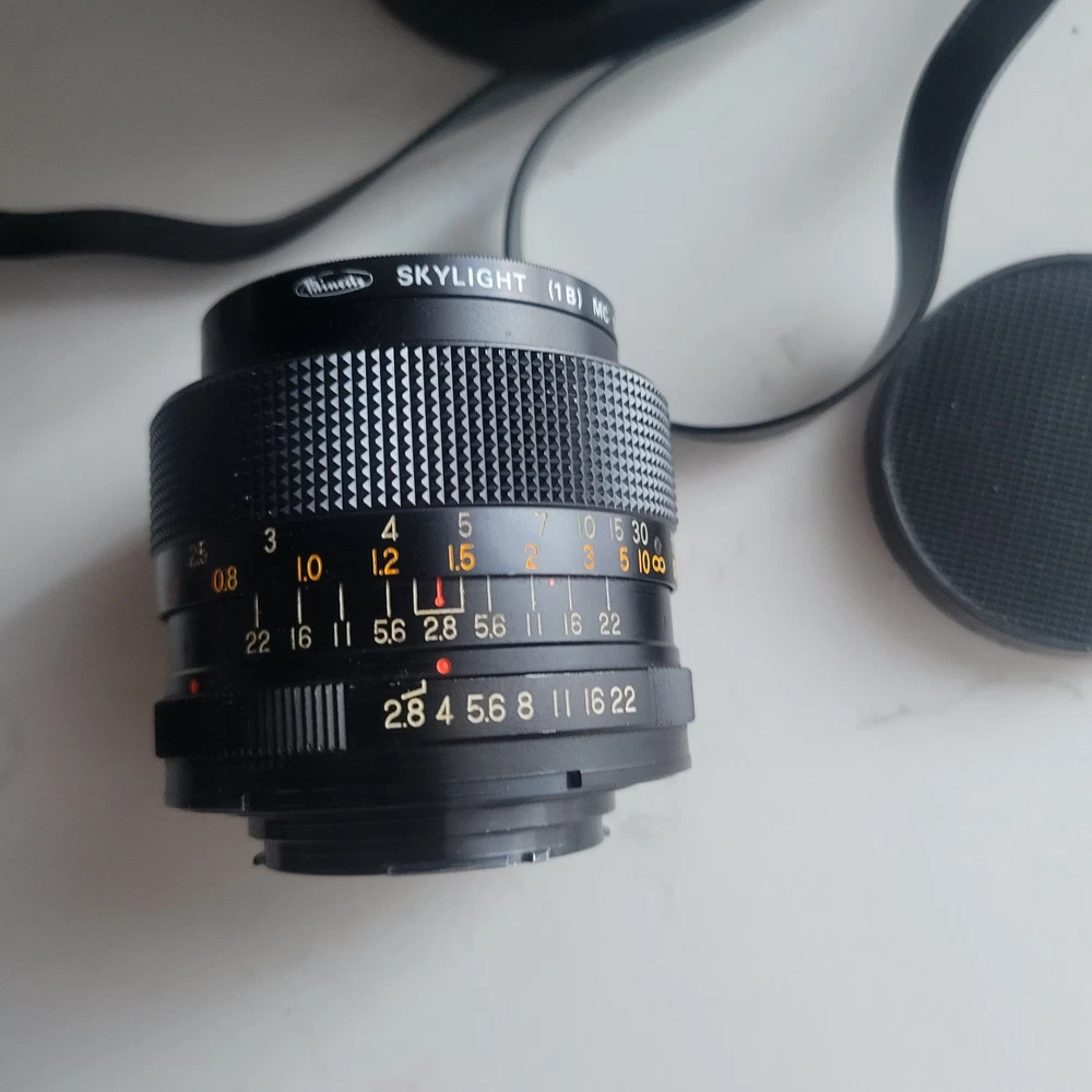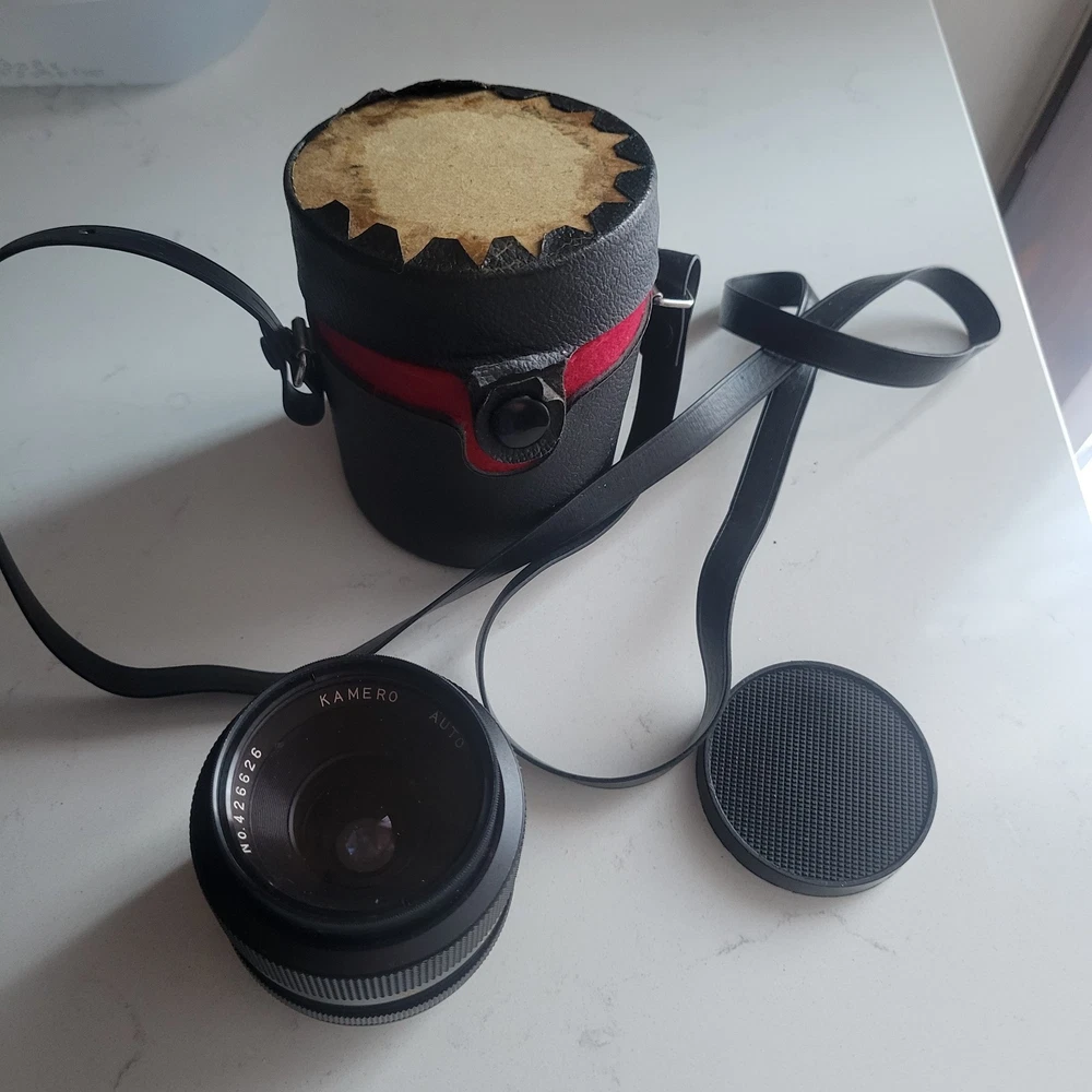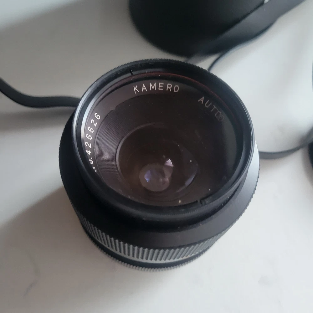 The Kamero Auto 1:2.8 35mm Wide Angle Minolta MD Mount Lens is a high-quality lens designed for Minolta cameras. With a maximum aperture of f/2.8, this wide-angle lens is perfect for capturing a wide field of view with clarity. The autofocus feature makes it easy to capture sharp images without manual adjustment. The lens comes in a nice condition case for protection and storage. Ideal for photographers looking to expand their creative possibilities with a reliable and versatile wide-angle lens.