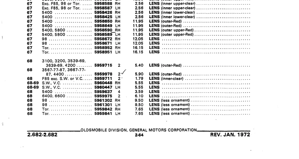Country/Region of Manufacture:United StatesVoltage:12 VBrand:OldsmobilePlacement on Vehicle:RearOE/OEM Part Number:5959637Number of Bulbs:0Universal Fitment:NoItems Included:boxType:lensManufacturer Part Number:5959637Superseded Part Number:5959637Finish:redInterchange Part Number:5959637Lighting Technology:IncandescentVintage Part:YesEstado del artículo:NuevoLight Color:0Lens Color:RedWattage:0Manufacturer Warranty:NonePerformance Part:YesHousing Color:0