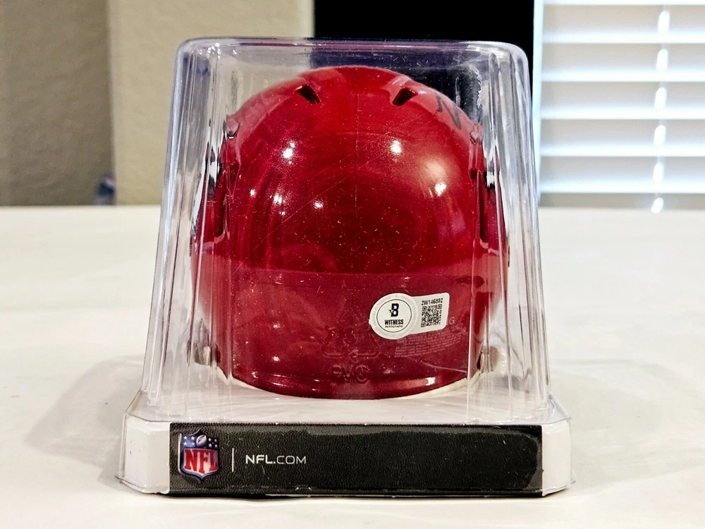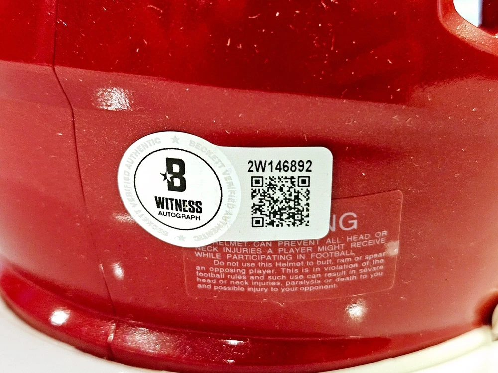 Leo Chenal Autographed Mini Helmet. Beckett Certification. Note All Items Have A Certification Sticker On Them. These Certification Stickers Will Be From Beckett, JSA, PSA , RSA or OKAUTHENTICS. Some Items Will Come With Matching COA, While Others May Not. Please Refer To Images Taken To See If Item Comes With Matching COA $5 USPS Shipping Combined shipping on all items won within 3 days. Each additional jersey won will only be $3 extra shipping