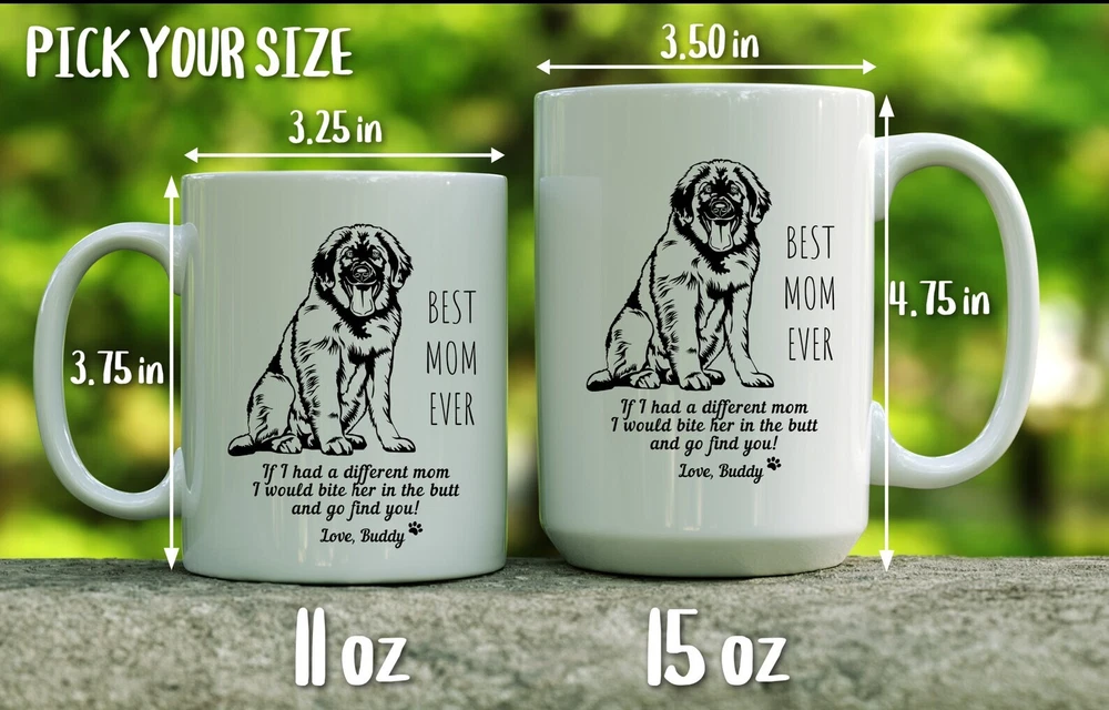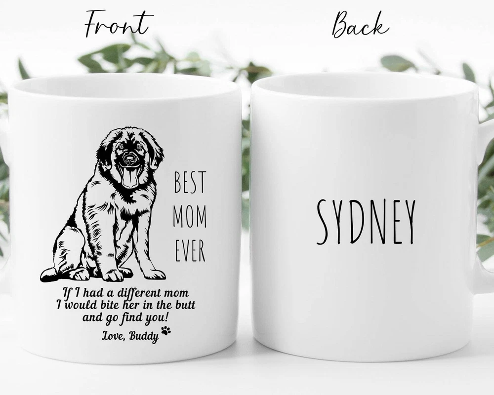 Leonberger Coffee Mug Personalized Leonberger Gift For Dog Mom Best Dog Mom Ever Punch In The Face Mug Humorous Dog Mom Birthday Gift Product Details.. This high quality 11oz. ceramic white mug has a premium hard coat that provides crisp and vibrant color reproduction sure to last for years. Perfect for all hot & cold beverages. The highest quality printing possible is used. It will never fade no matter how many times you wash it. Material: 100% Ceramic. Print both sides. Dishwasher and Microwave Safe. High Gloss + Premium White Finish. Printed in the U.S.A. Personalized & Custom. We support personalized and custom mug to add custom, when placing an order, you can add notes to the "order note" in shipping address section. Also you can contact us directly via message. Shipping Info. Ready to ship in 1 to 2 business days, All products are made-to-order and proudly printed in the United States. Shipped by USPS and DHL, You will receive your order in 5-7 days. Replace & Refund. All products are defective during shipping broken, chipped will be replaced free of charge. You are not satisfied with the product, we will refund 100% money to you. If any other issues arise, please do not hesitate to message, we would be more than happy to assist you.